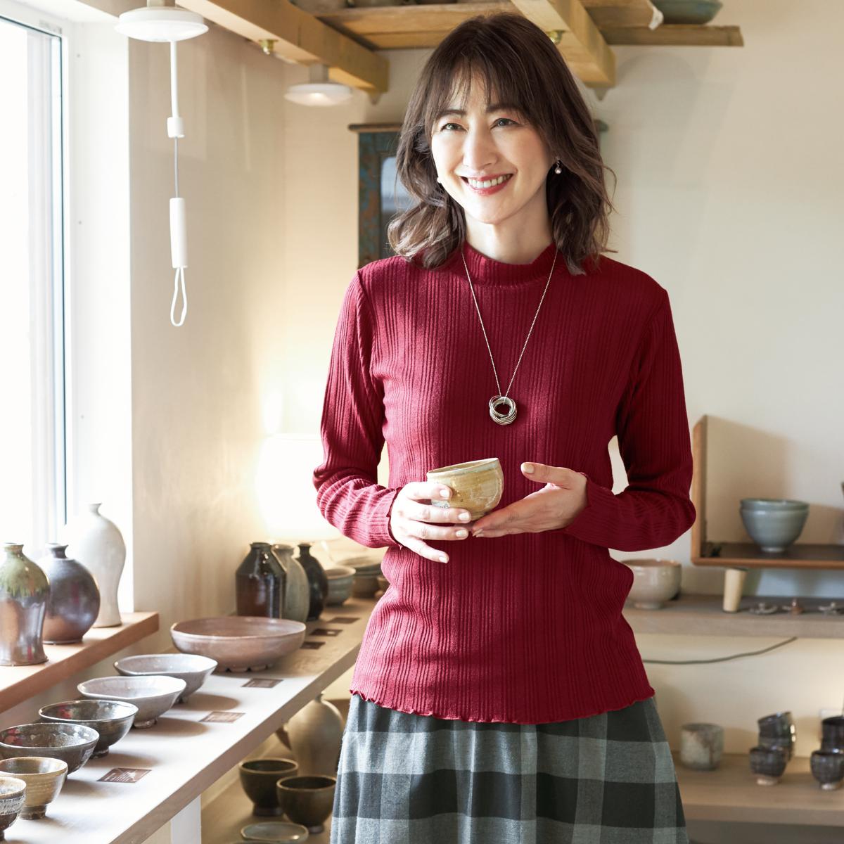 光沢感のある立体的な縦畝のリブで華奢見え効果も。