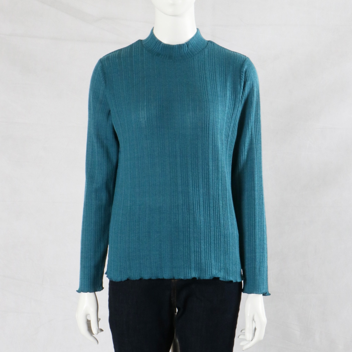 -お買い得ポイント-インに合わせやすいベーシックなカラーをご用意しています。重ね着をしてももたつかずキレイ。-デザイン-光沢感のある立体的な細リブが、縦ラインを強調し華奢見せ。袖口と裾のメロー使いで一枚でも着映えます。-素材特徴-伸縮性があり着脱ラクラクリブ素材で高見えしているところも魅力です。