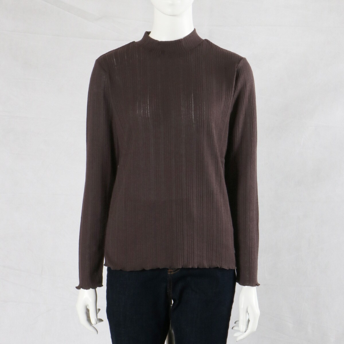 -お買い得ポイント-インに合わせやすいベーシックなカラーをご用意しています。重ね着をしてももたつかずキレイ。-デザイン-光沢感のある立体的な細リブが、縦ラインを強調し華奢見せ。袖口と裾のメロー使いで一枚でも着映えます。-素材特徴-伸縮性があり着脱ラクラクリブ素材で高見えしているところも魅力です。