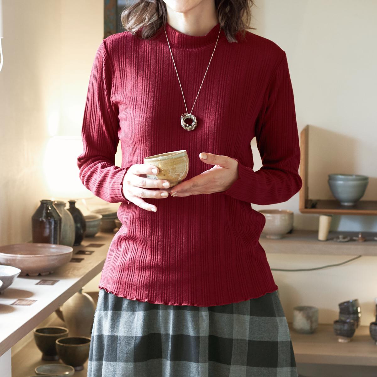 光沢感のある立体的な縦畝のリブで華奢見え効果も。