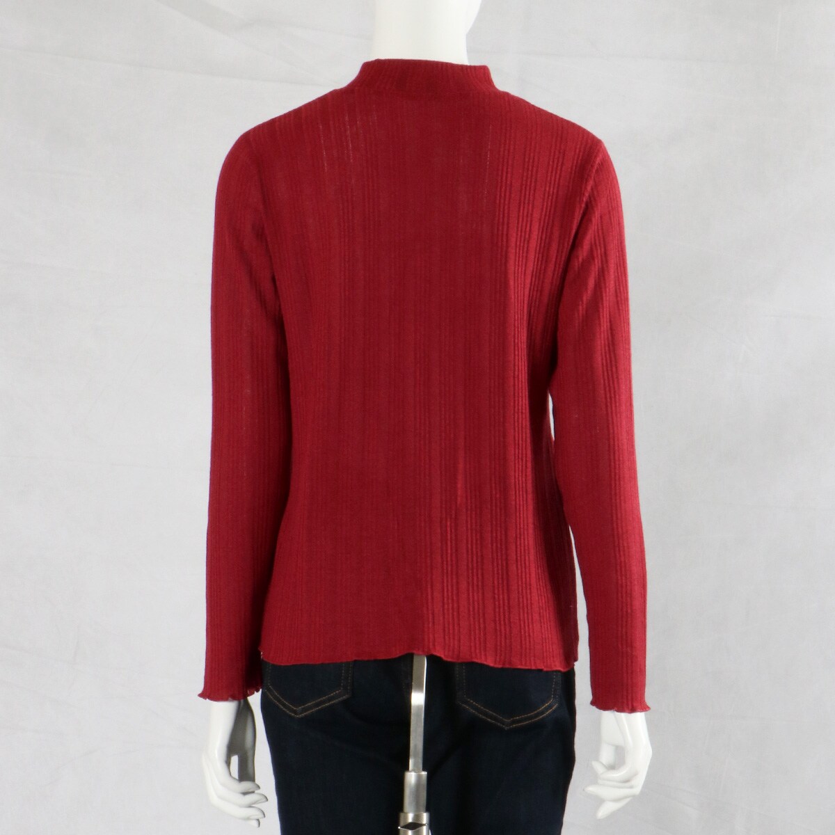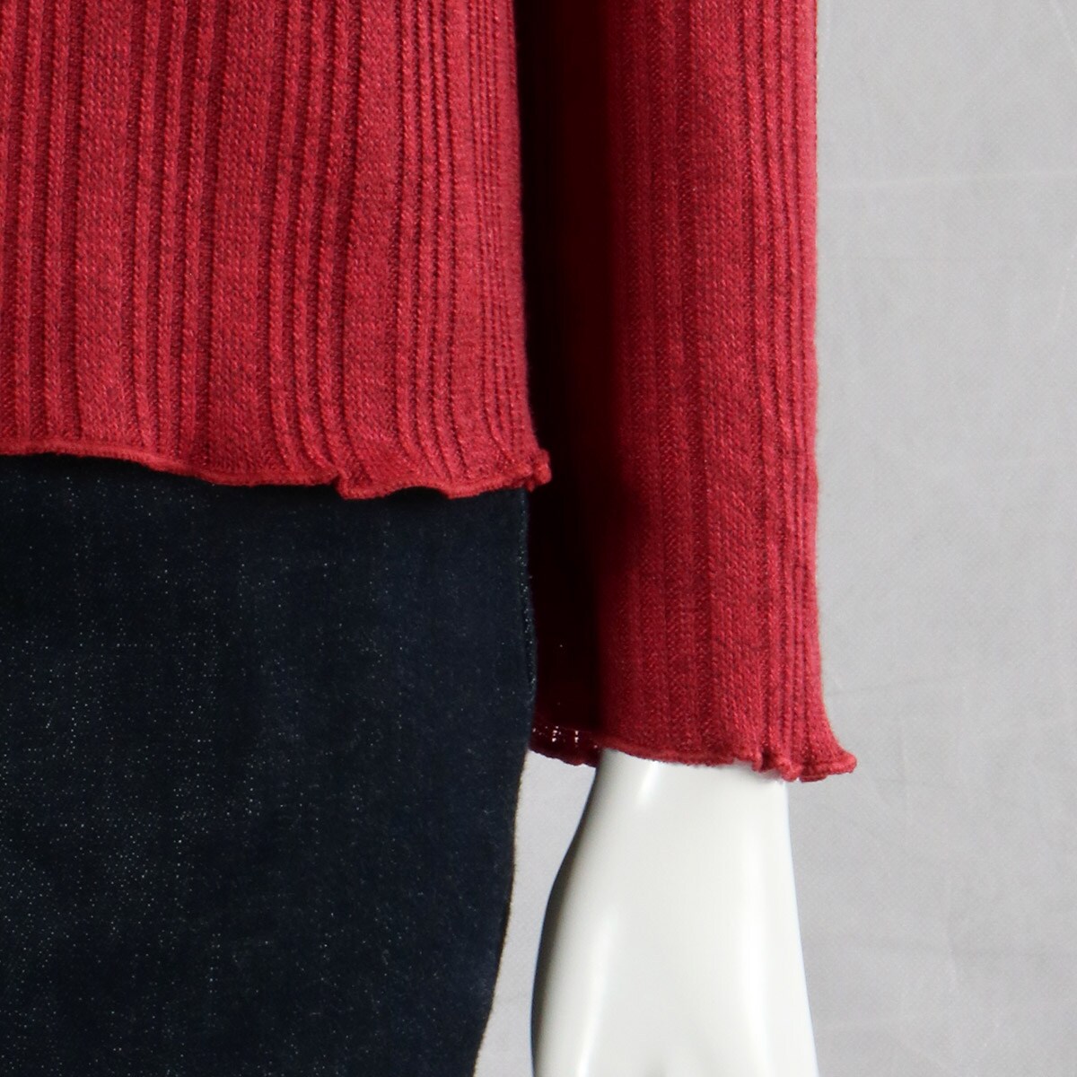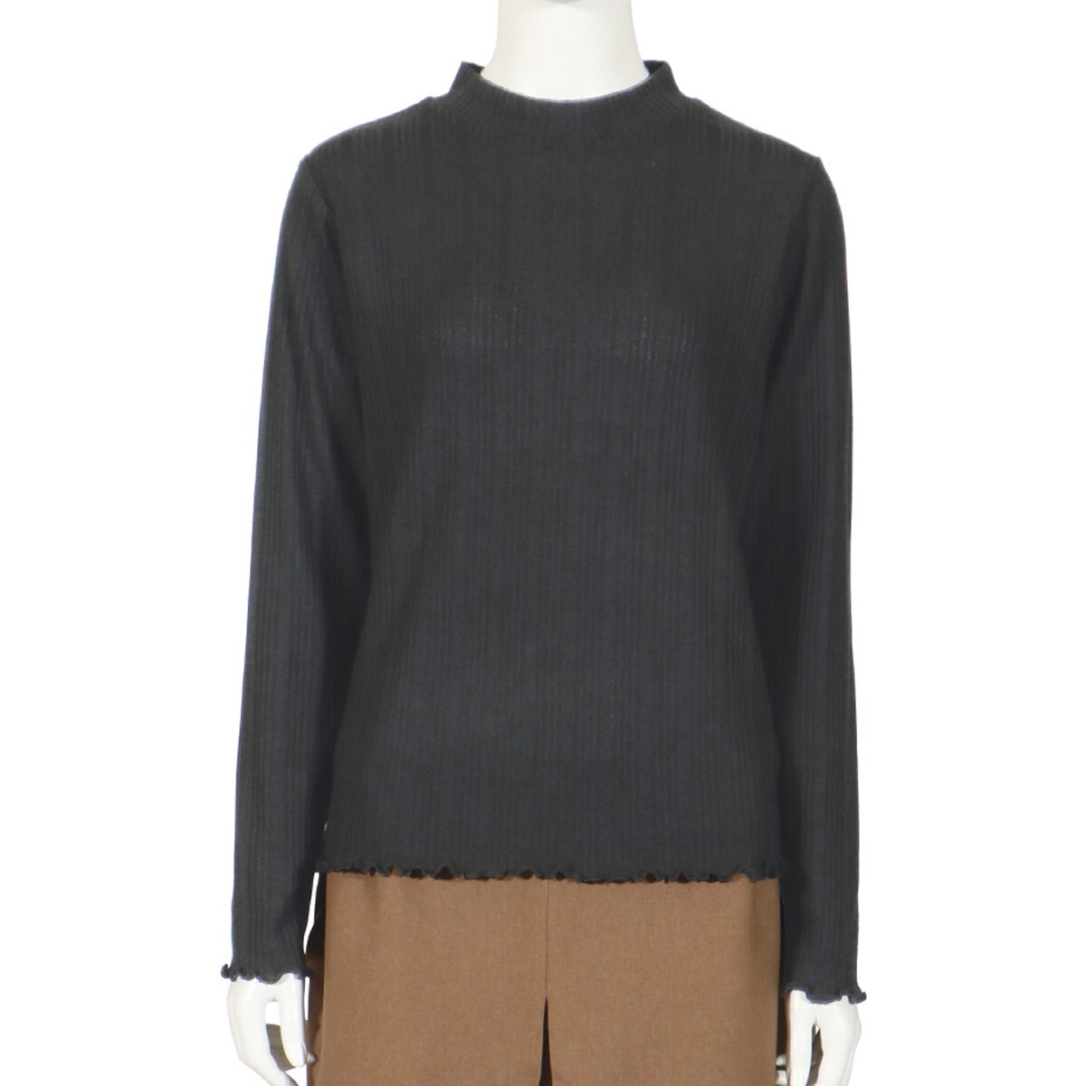 -お買い得ポイント-インに合わせやすいベーシックなカラーをご用意しています。重ね着をしてももたつかずキレイ。-デザイン-光沢感のある立体的な細リブが、縦ラインを強調し華奢見せ。袖口と裾のメロー使いで一枚でも着映えます。-素材特徴-伸縮性があり着脱ラクラクリブ素材で高見えしているところも魅力です。