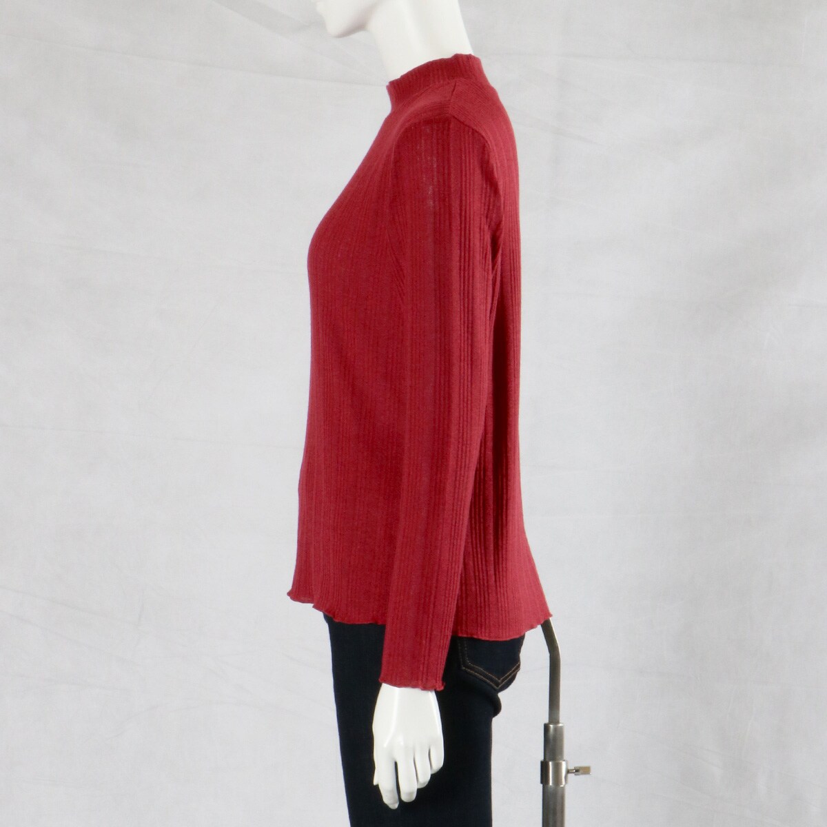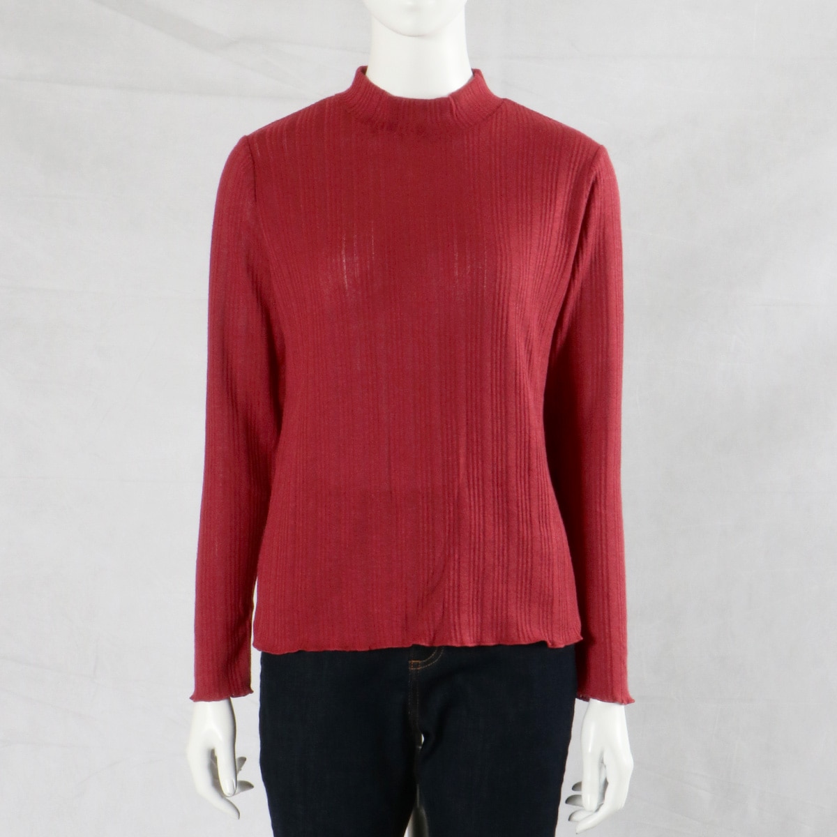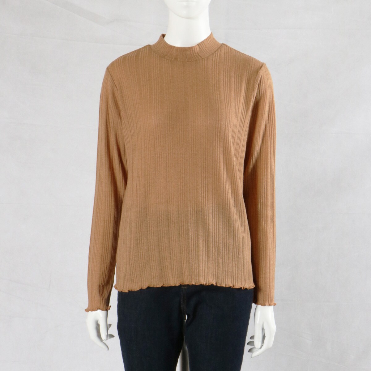 -お買い得ポイント-インに合わせやすいベーシックなカラーをご用意しています。重ね着をしてももたつかずキレイ。-デザイン-光沢感のある立体的な細リブが、縦ラインを強調し華奢見せ。袖口と裾のメロー使いで一枚でも着映えます。-素材特徴-伸縮性があり着脱ラクラクリブ素材で高見えしているところも魅力です。