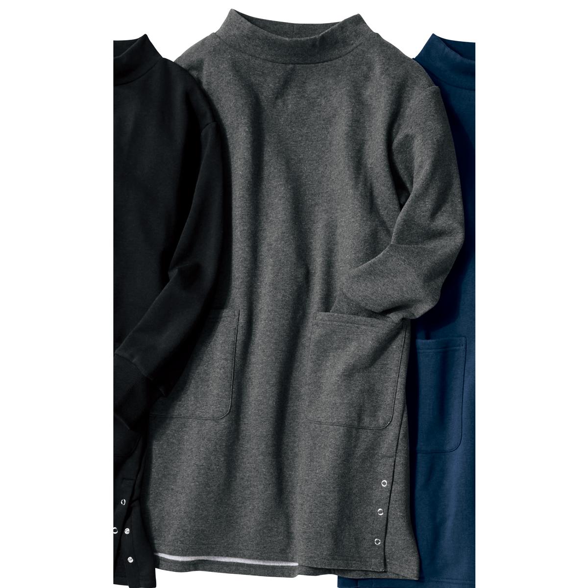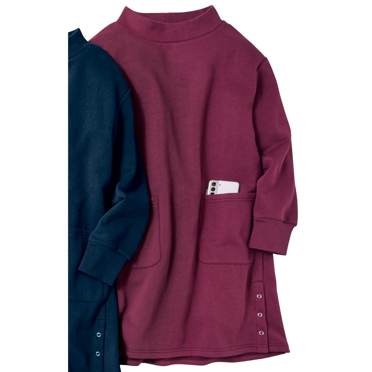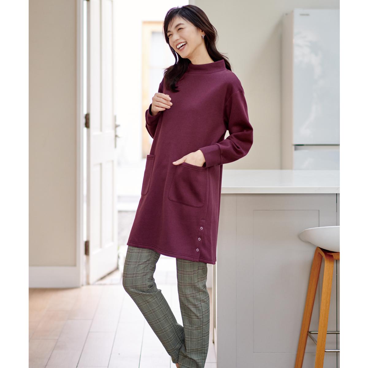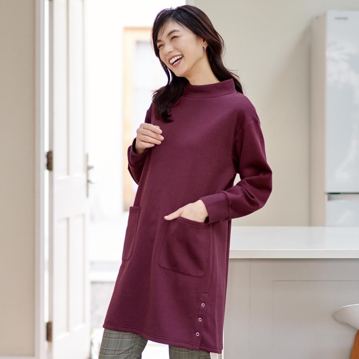 -お買い得ポイント-首元から腰まわりまですっぽり包んであったかゆったりラクな着心地-デザイン-ボタンを開けるとスリットデザインにスマホが入る大きめポケット付き-素材特徴-軽くてやわらかな裏起毛空気を含んでふんわりあったか