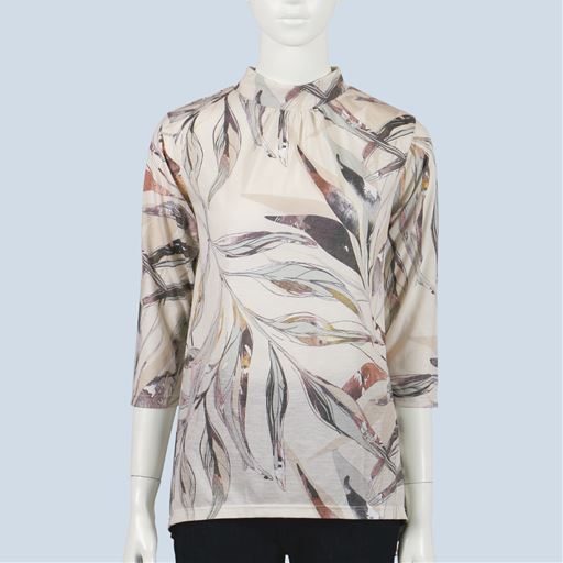 • ハイネックプリントチュニック | ベージュ系