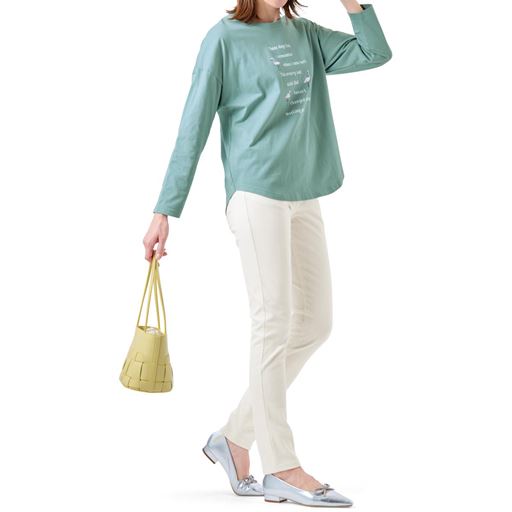 -お買得ポイント-人気のプリントTシャツに新柄が登場!普段使いにちょうどいいTシャツです。-デザイン-腰まわりをカバーできるラウンド裾。体のラインを拾いにくくかわいいゆるっとしたシルエット。-素材特徴-身生地は程よい厚みでしなやかな優しい肌触りの綿100%素材。