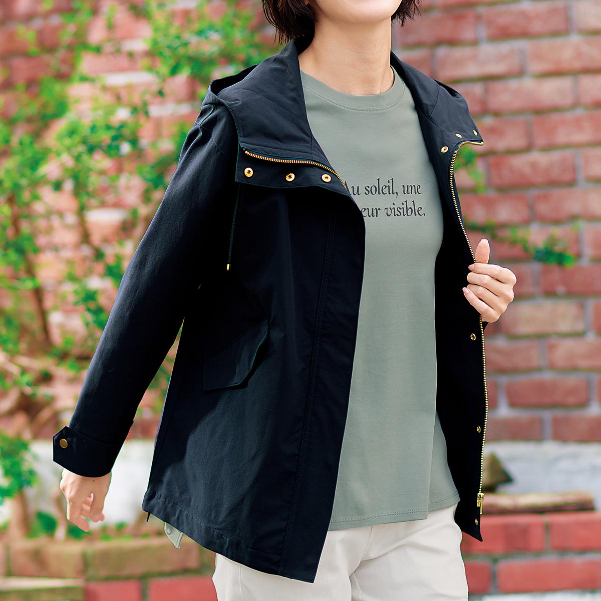 ほんのりAラインのシルエットが腰まわりの体型カをカバー。シンプルなロゴがコーディネートのアクセントになります。