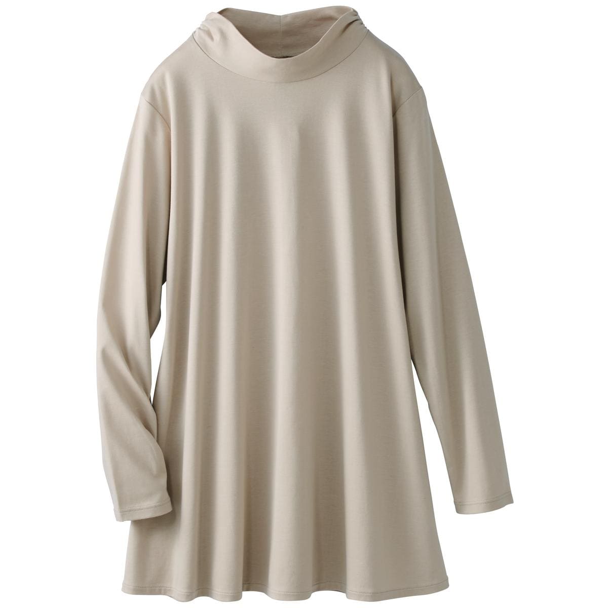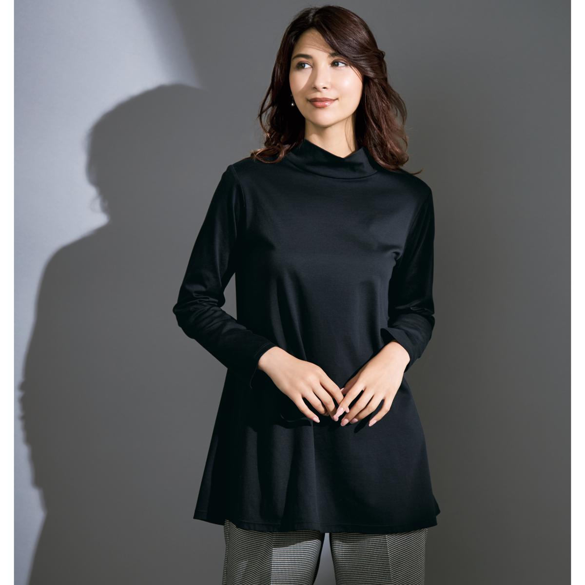 -お買い得ポイント-シルクのような風合いと美しい光沢、シックなカラーで大人に似合うチュニックを作りました。-デザイン-首元を隠す柔らかなハイネック。ゆるやかなAラインでリラクシーな着心地。-素材特徴-ひとつひとつ丁寧に摘み取られたインド南部産の上質な綿を用いたカットソー。ハリとコシがあり、シワになりにくく、上品な光沢と滑らかな肌触りが特徴です。