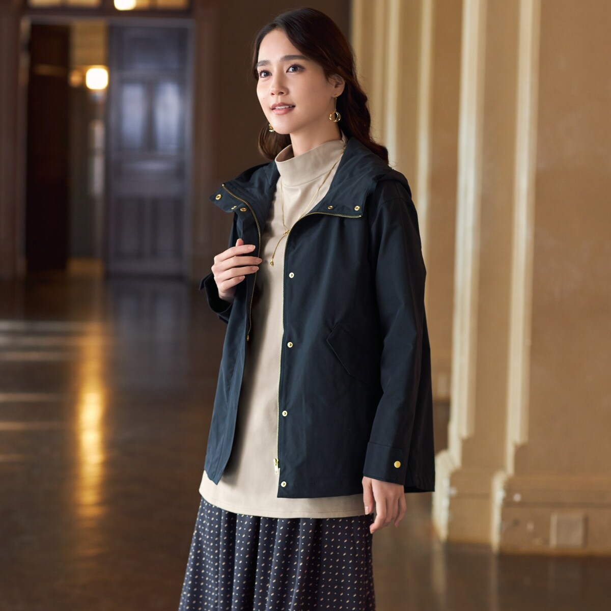 ゆるやかなAラインでリラクシーな着心地。サイドのシャーリング衿が首元をカバーします。