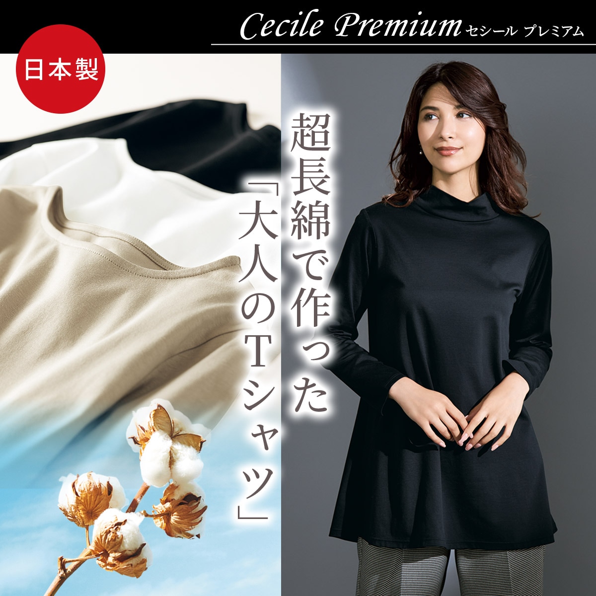 超長綿の光沢感としなやかさがポイント!シルクのような風合いをもつ超長綿100%のプレミアムなカットソーを作りました。しなやかでさらっとした肌ざわりをどうぞ肌でお確かめください。