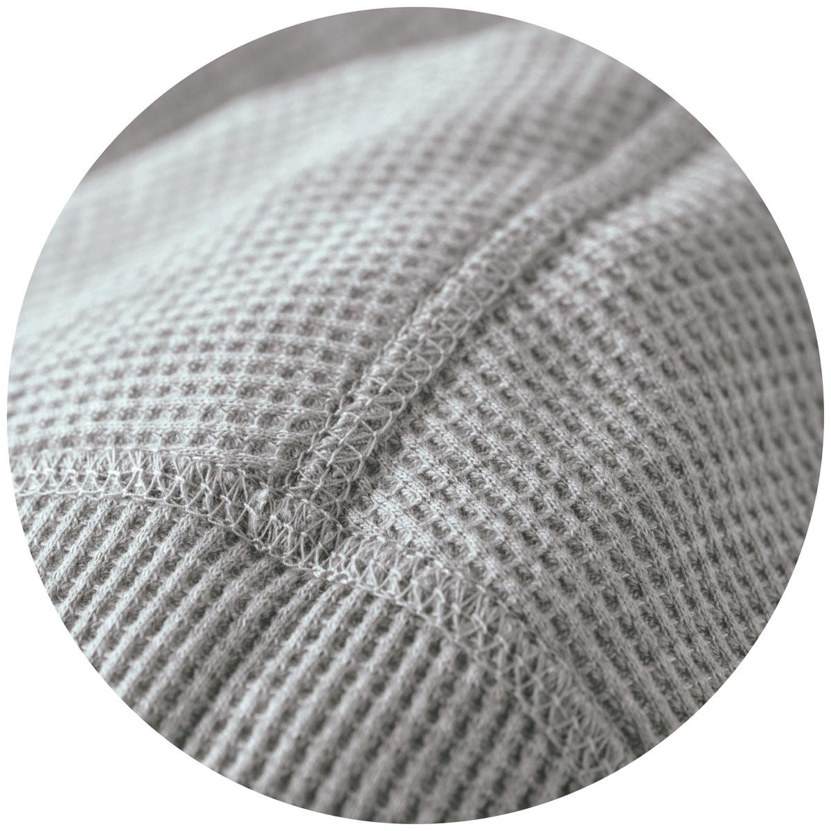 肌ざわりの良い綿混素材。ワッフルの凹凸がさらっとした着心地。UVカット機能付き。