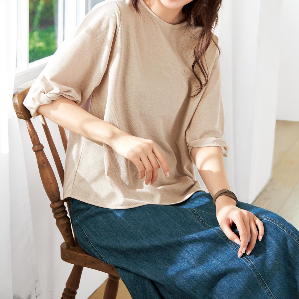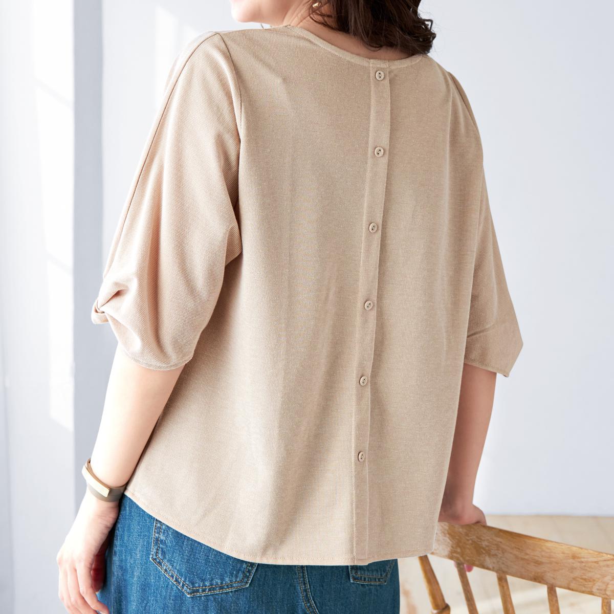 -お買い得ポイント-お手入れしやすいラクロン(R)・洗濯機で洗える・乾きが早い・軽くてラク・洗濯後シワになりにくいとさらっとした着心地のマイクロ鹿の子素材で夏に嬉しいプルオーバー。-デザイン-軽やかなねじり袖がアクセントになっています。背中には飾りボタンが付いています。-素材特徴-麻のような風合いが心地いい。素肌に心地いいなめらかな肌ざわりと、肌ばなれよく、さらっとした着心地です。