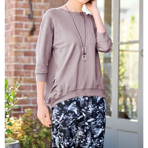 脇タック使いプルオーバー(7分袖)(綿100%・洗濯機OK)