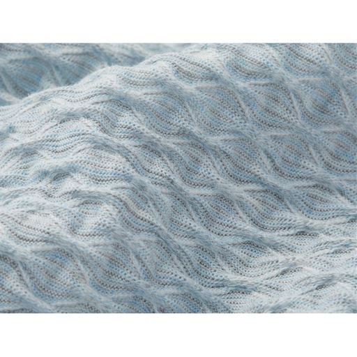 ブルー系 光の加減で浮き立つ立体的なニュアンスカラーが装いに夏らしさを添えて。ふんわり軽やかな着用感です。