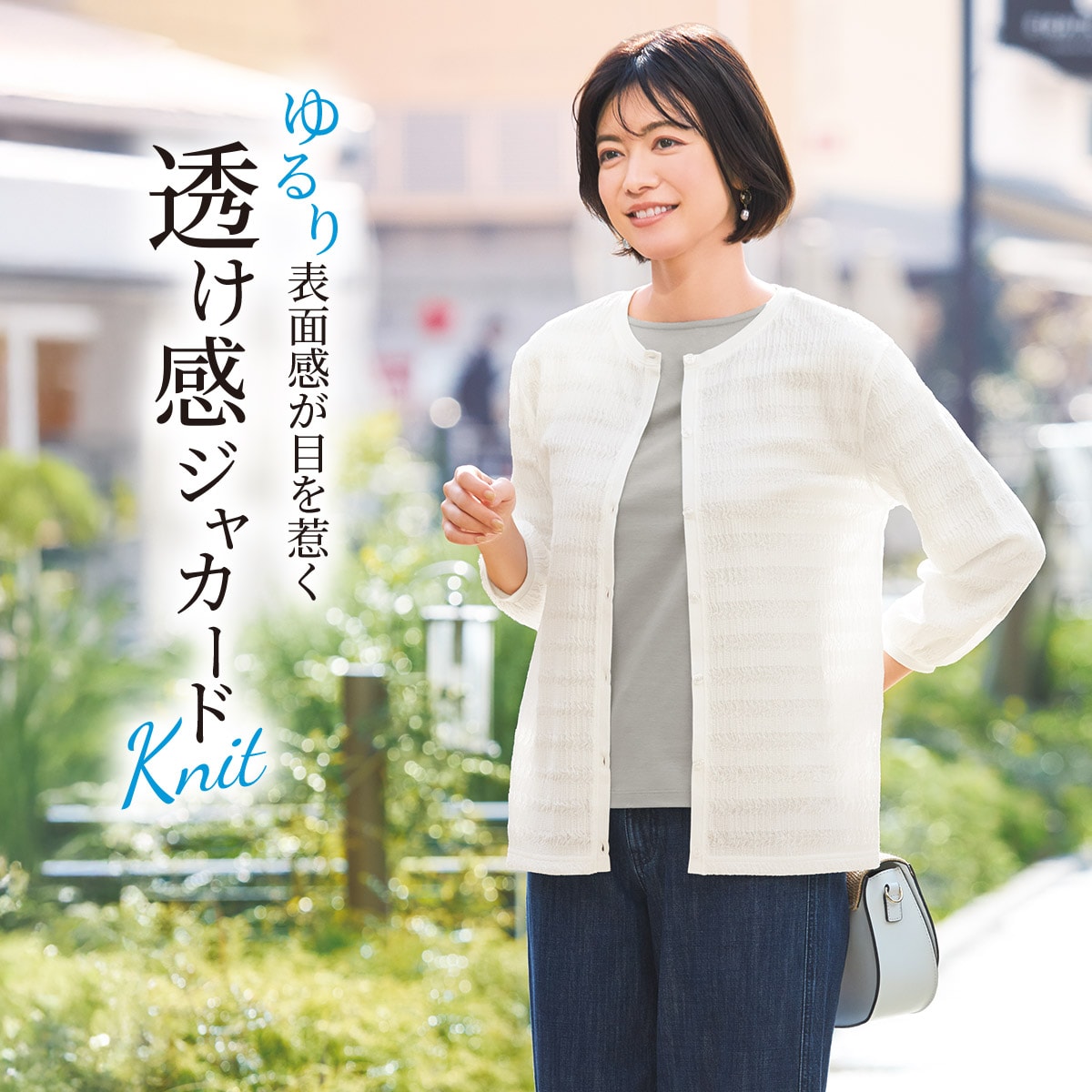 ゆるり表面感が目を惹く!透け感ジャカードニット!
