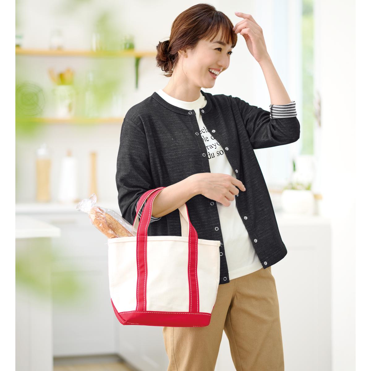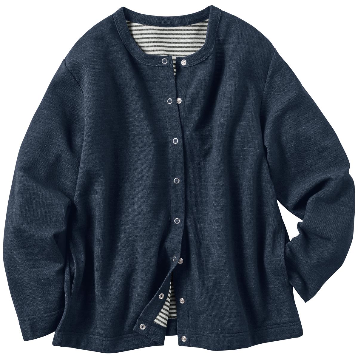 -お買い得ポイント-お客さまのお声に応えてポケット裏をリニューアル!やわらかくて動きやすいデニム見えするカーディガンです。-デザイン-チラ見えする裏ボーダーがアクセント。ドットボタンなので、開閉がラク。-素材特徴-UVカット機能付きで日差しをブロック。洗濯機で洗えてシワになりにくいのも嬉しい。