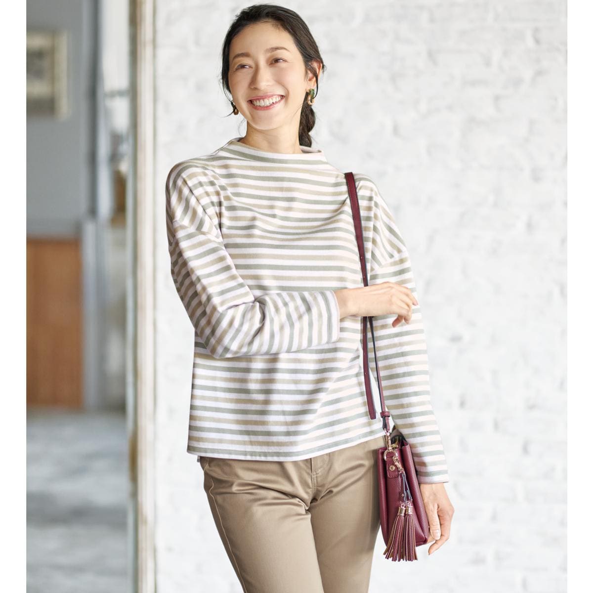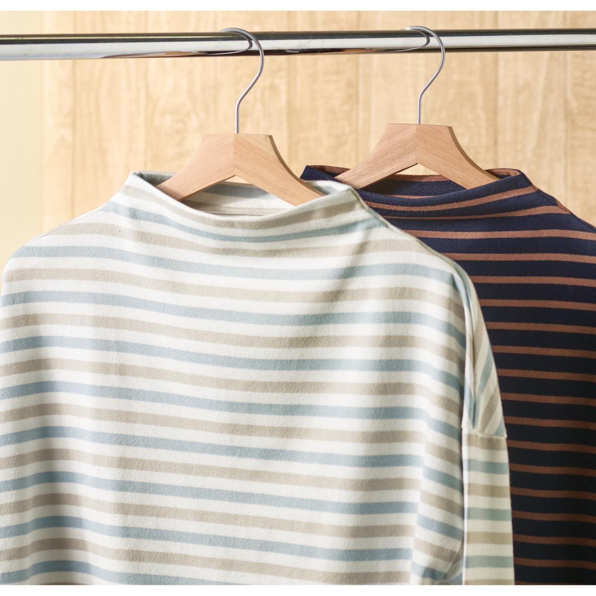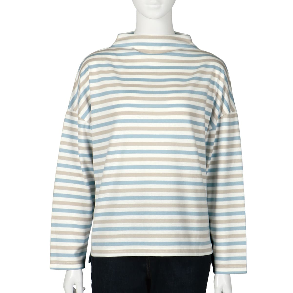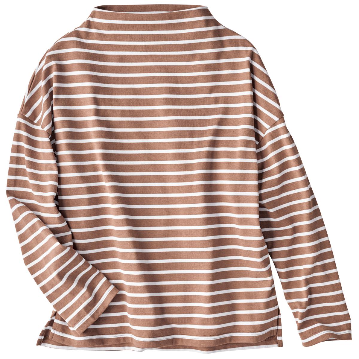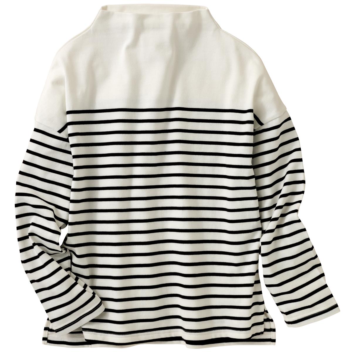 -お買い得ポイント-すっきり上品なボトルネックプルオーバーです。首のラインに沿ったゆるめの襟ぐりがどんなアウターともベストマッチです。 シャツをプラスしてキレイめカジュアルにも。-デザイン-細めのボーダーピッチでキレイめ仕上げに!肌なじみの良いやわらぎカラーが優しい印象に!-素材特徴-サラっと綿混で肌ざわりがいいのが特徴です。