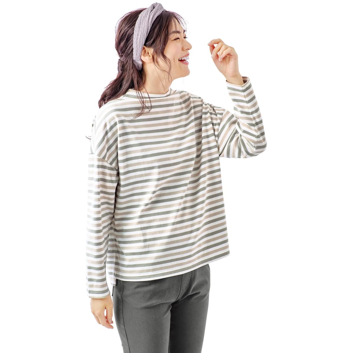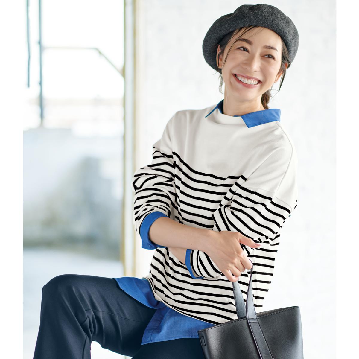 大人に似合うキレイめ綿混ボーダーTシャツ