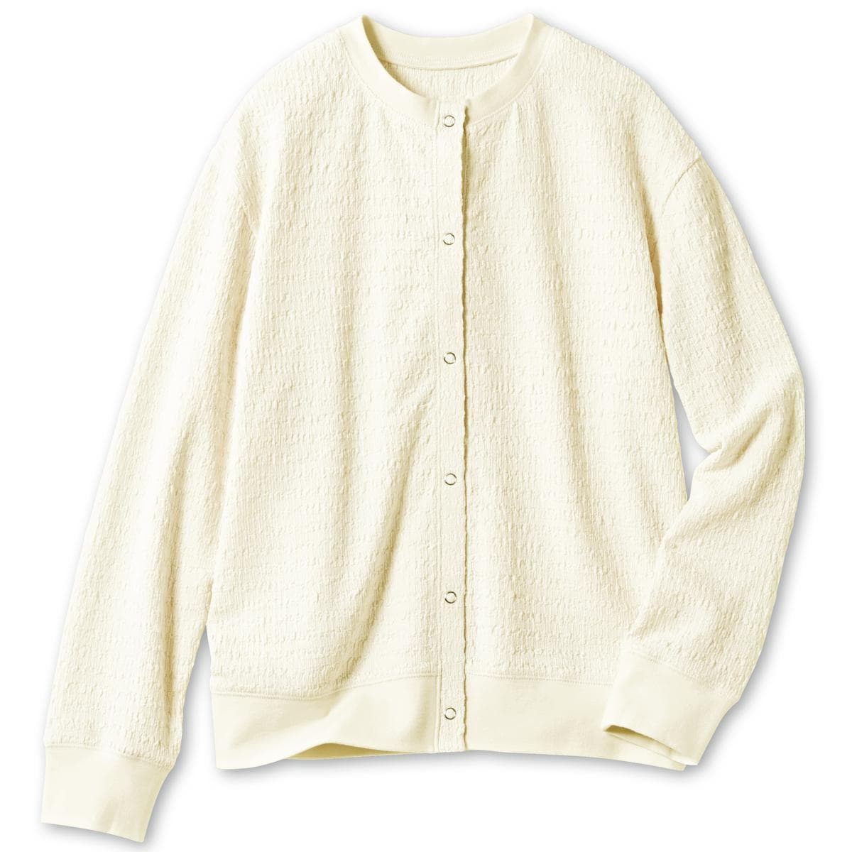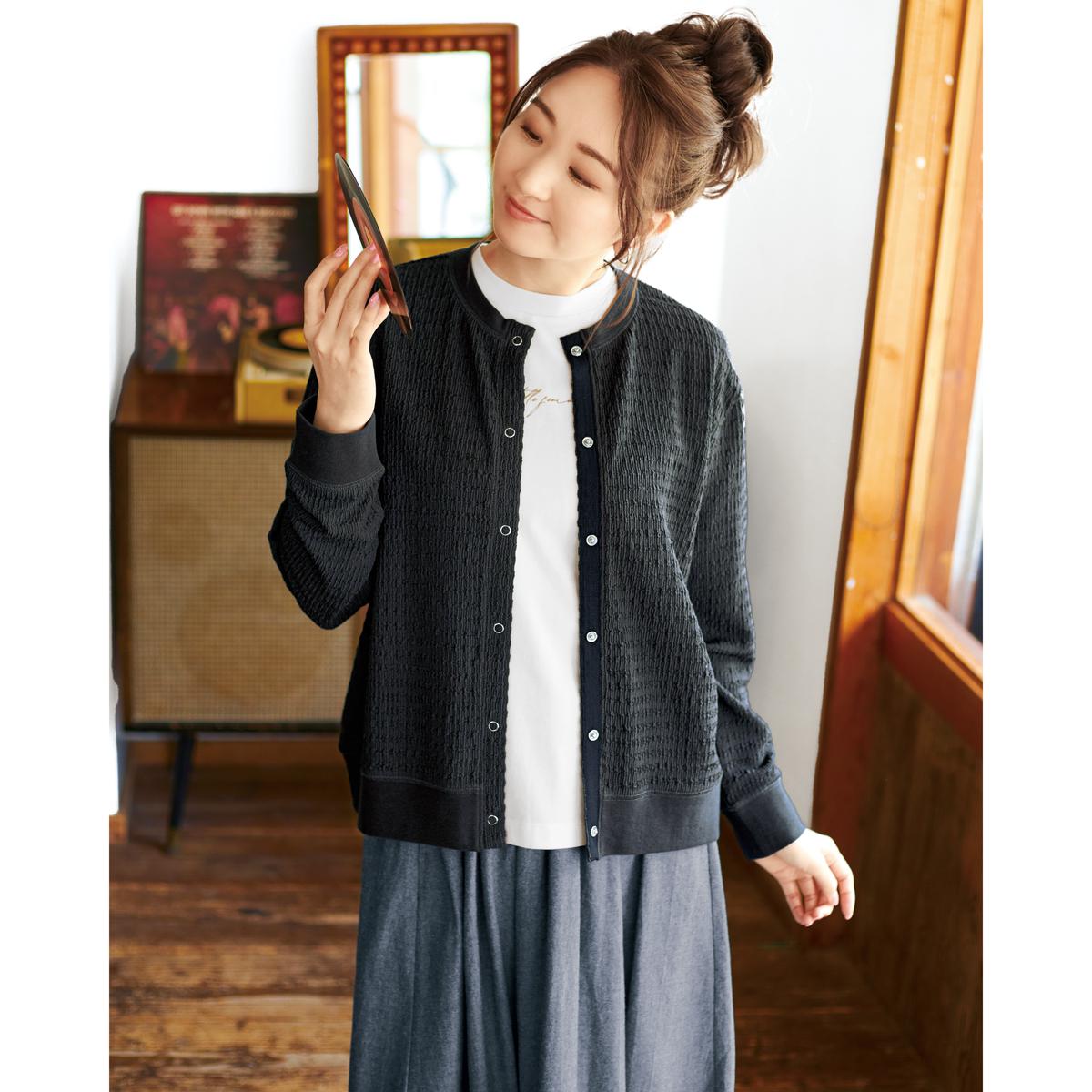 -お買い得ポイント-サッと羽織れ、一つは欲しい華やかなカーディガンです。エアリーな着心地で季節の変わり目にピッタリ。-デザイン-トップスを選ばず、何にでも合わせやすいカーディガンです。シワになりにくいので、カバンに入れて持ち運びがラク。ちょっと肌寒い時にサッと羽織れます。-素材特徴-さらっと優しい肌あたりでシワが目立ちにくいジャカード素材。