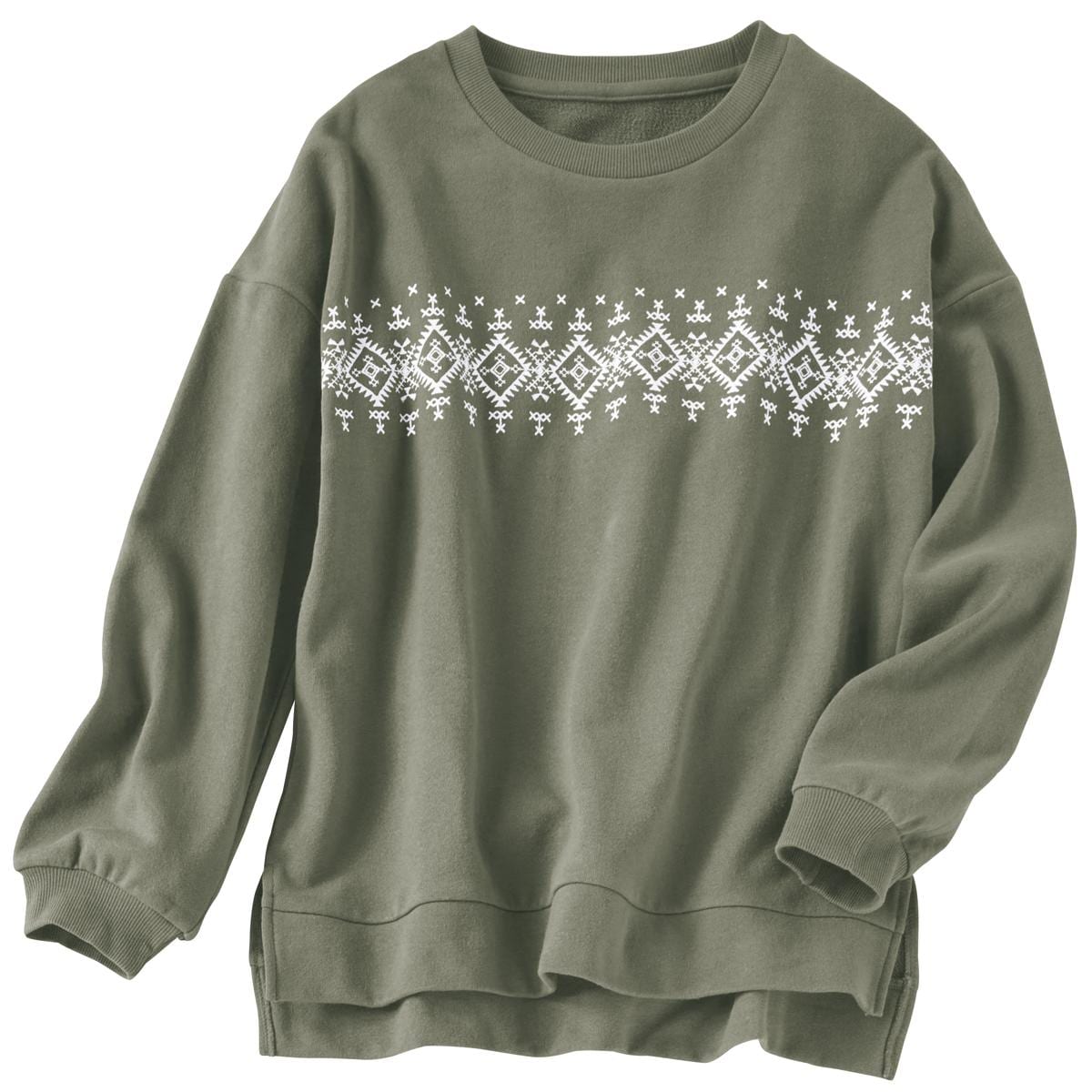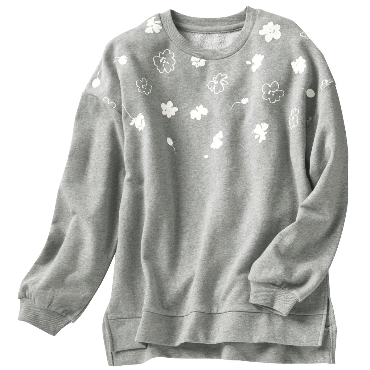 -お買い得ポイント-毎年人気のプリントトレーナーに今年も新柄が登場!!-デザイン-主張しすぎないデザインが好評!クルーネックで首元すっきり。前後差のある裾はスリット入りで窮屈感なく着こなせます。-素材特徴-肌ざわりがいい綿素材。ふくらみのある裏毛素材にリニューアルしました!