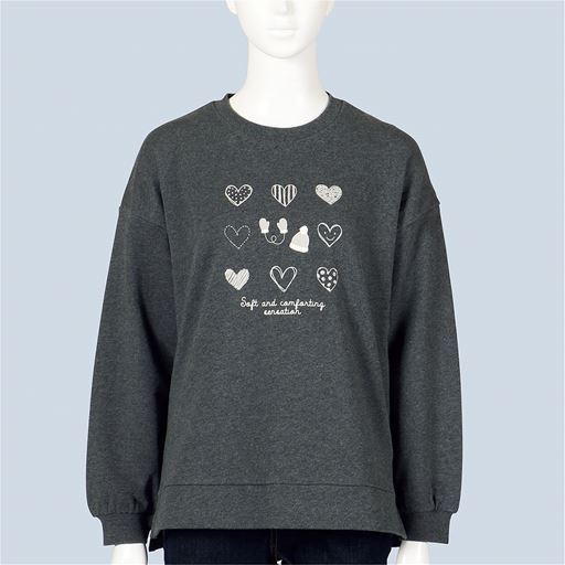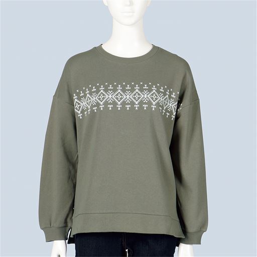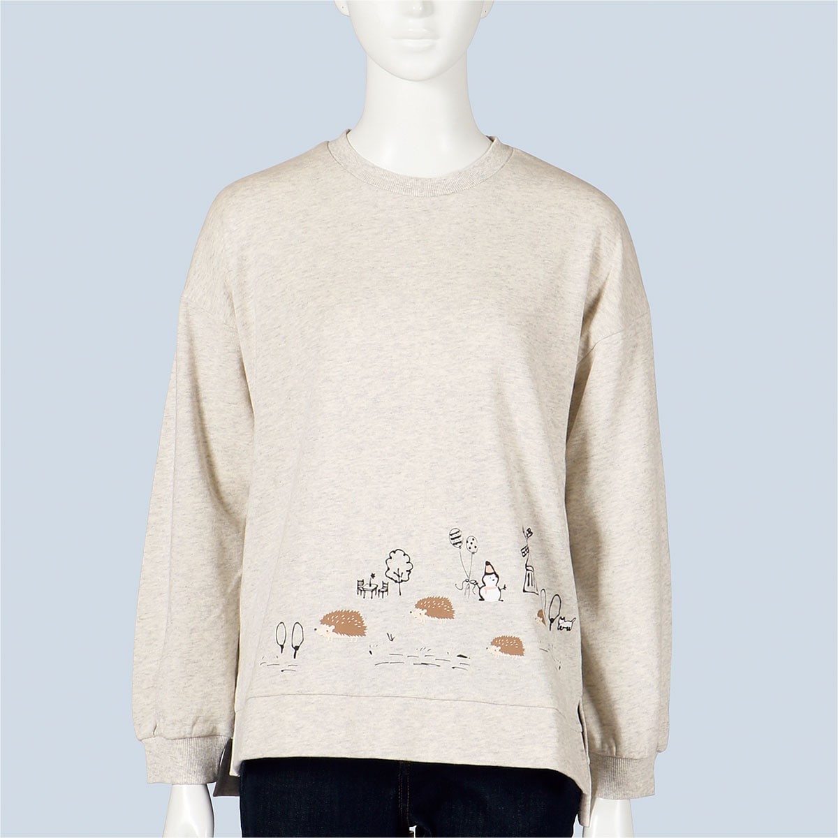 ■綿100%(裏毛) 衿・袖口部分/綿97%ポリウレタン3%(リブ)●両脇スリット入り▼商品によって柄の位置が異なります●洗濯機OK●中国製