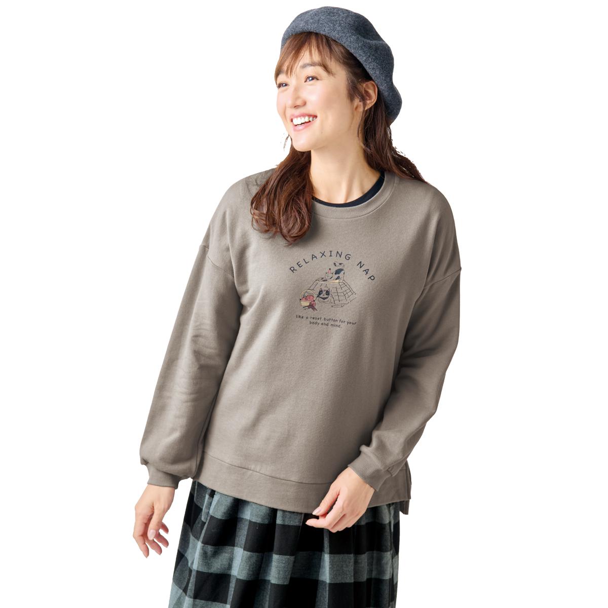 【Itmo TOPS】いつもそこにある毎日着たい私の定番トップス!ふんわりやわらかな着ごこちのプリントトレーナー。