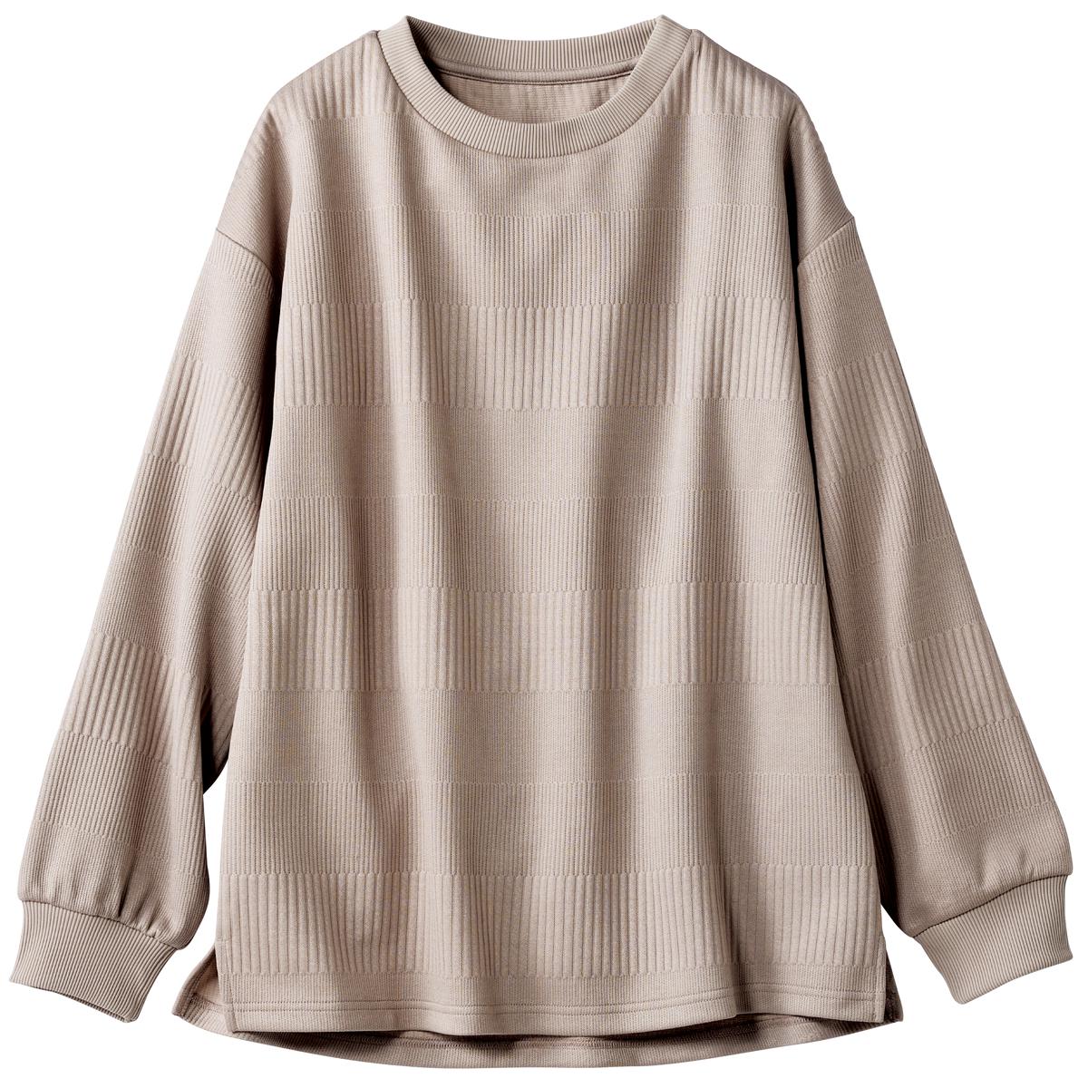 -お買い得ポイント-シンプルなデザインでボトムを選ばず、着回しやすい!-デザイン-後長めの丈でヒップをカバー。両脇スリット入りで窮屈感のない着心地です。-素材特徴-変則リブ編みが縦ラインを強調し、スリムな印象に。