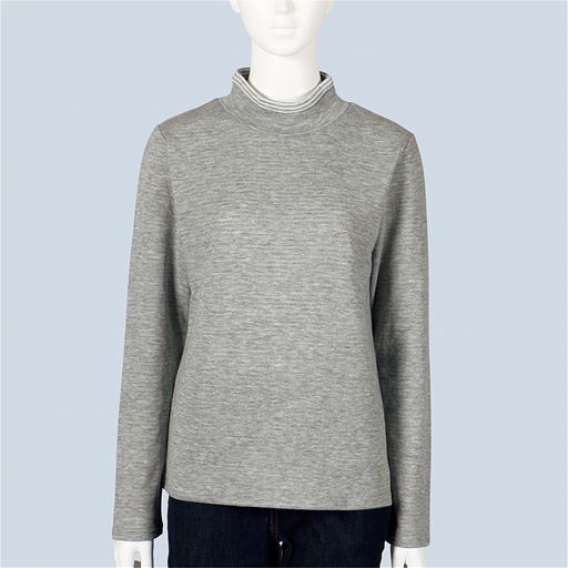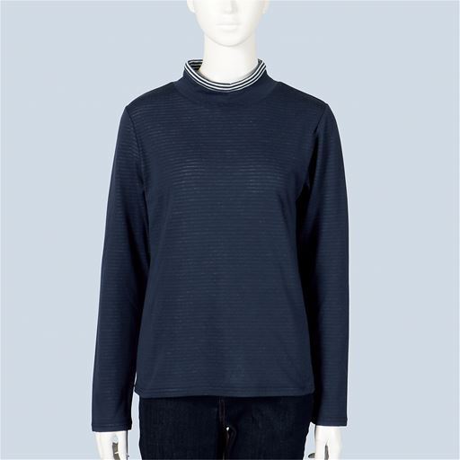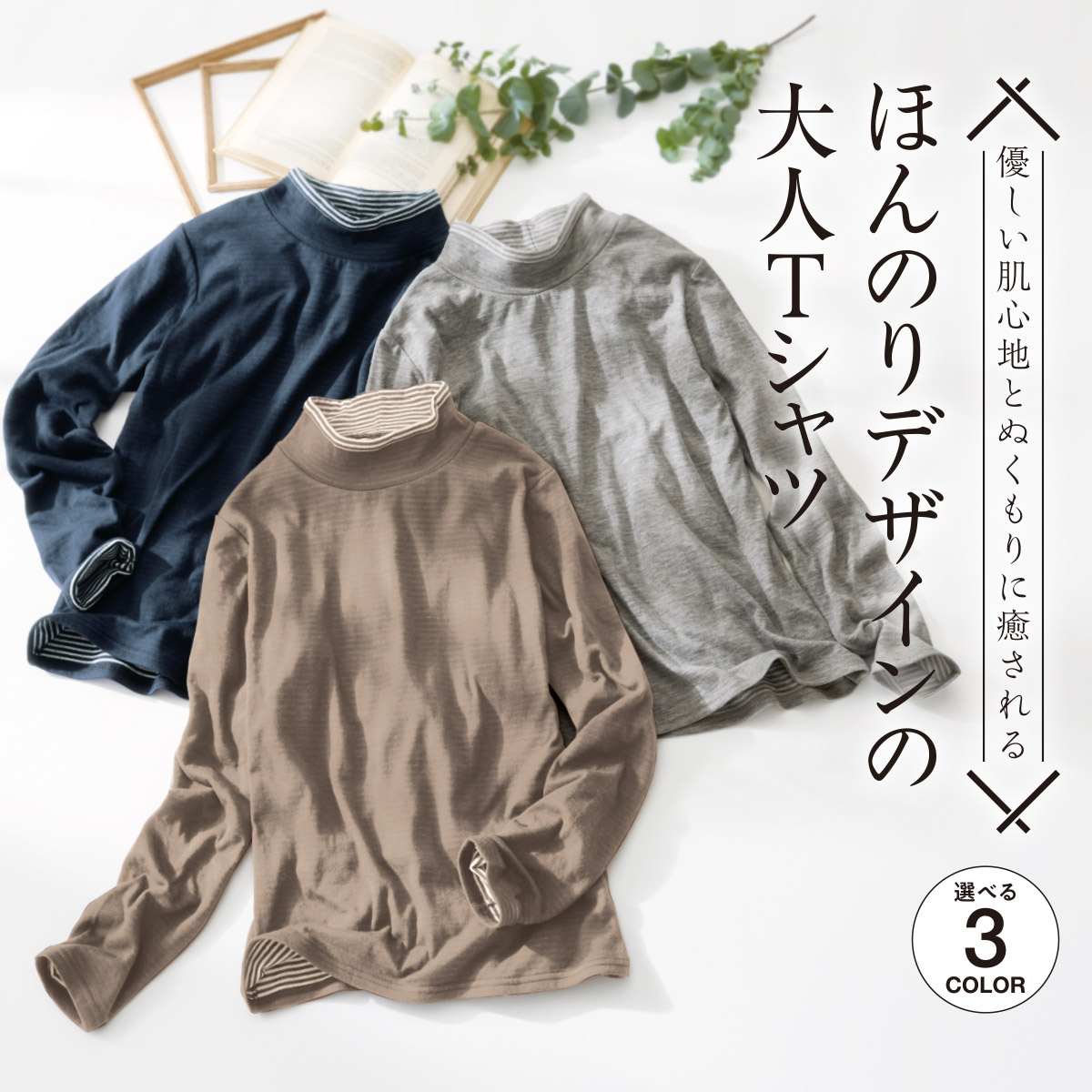 -お買い得ポイント-適度な厚みの柔らかな風合いがデイリー使いに◎。ボトムを選ばず、着回しやすいので1つは持っておきたいアイテムです。ふんわり軽く優しい肌触りで温かなのもこれからの季節にうれしいポイントです。-デザイン-衿元から表地と同系色のボーダーがチラリと見えておしゃれ。-素材特徴-空気の層を含んで温もりのあるふわっと柔らかな接結素材。