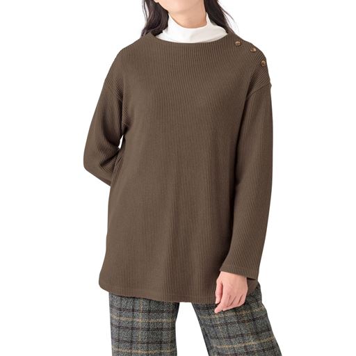 -お買い得ポイント-マカロンカラーがこの冬のスタイリングのポイントに!乾燥機OKなニット見えカットソーで簡単ケア。-デザイン-すっきり上品なモックネックに肩にあしらった飾りボタンがアクセント。腰まで包みこむ丈感とラウンド裾がカワイイ♪-素材特徴-洗濯機で洗えて乾燥機もOK。素材感もふんわり。まるでニットのような柔らかい着心地。
