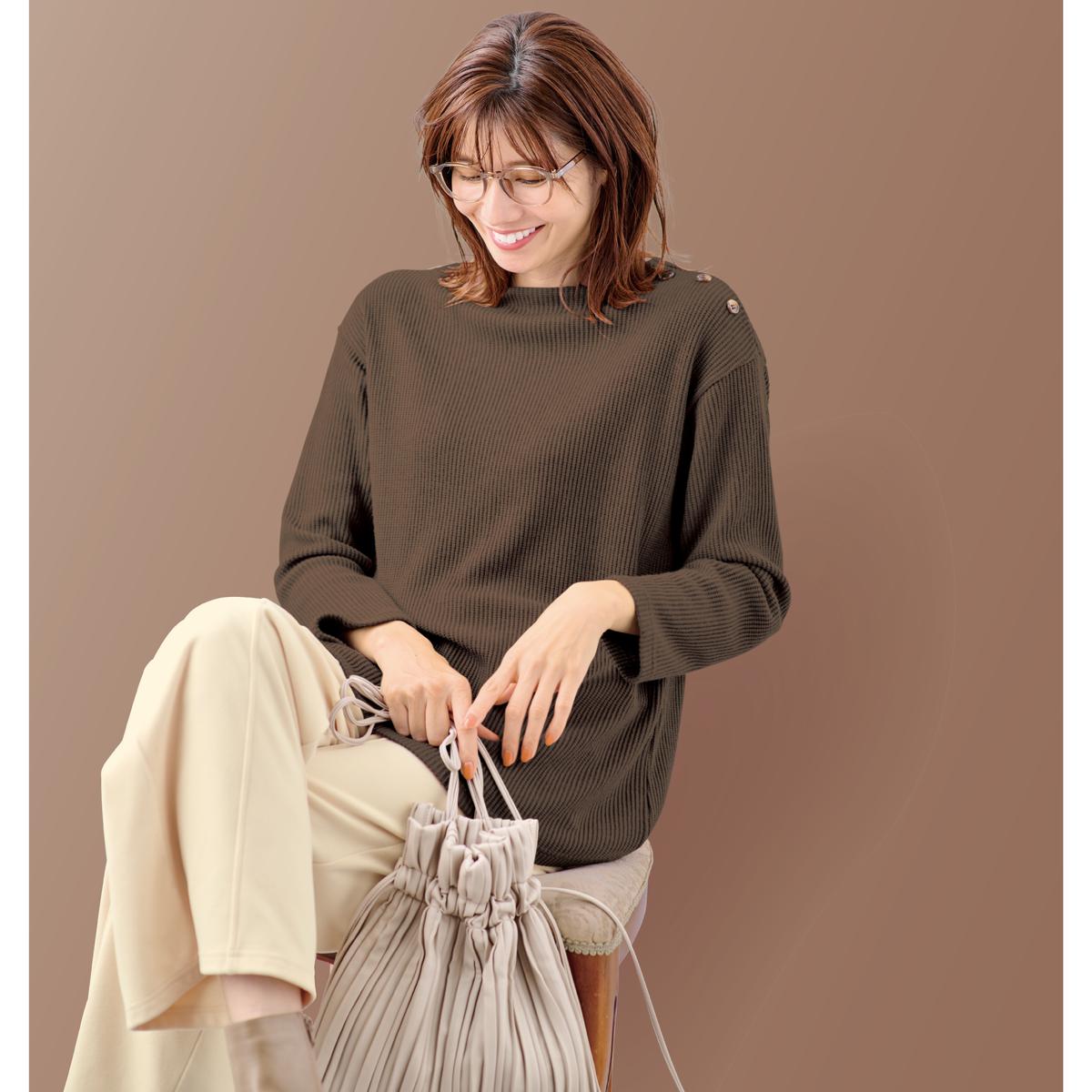 ふんわりあったか裏起毛素材。ニット見えするカットソー素材をあたたかな裏起毛に仕立てました。