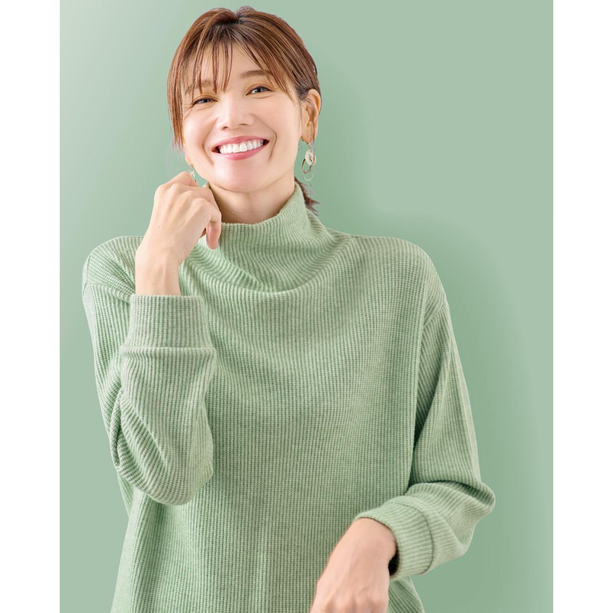 -お買い得ポイント-マカロンカラーがこの冬のスタイリングのポイントに!乾燥機OKなニット見えカットソーで簡単ケア。-デザイン-デイリーに使いやすいシンプルなデザイン♪ゆったりしたハイネックで締め付け感なくラフに着ていただけます。-素材特徴-洗濯機で洗えて乾燥機もOK。素材感もふんわり。まるでニットのような柔らかい着心地。