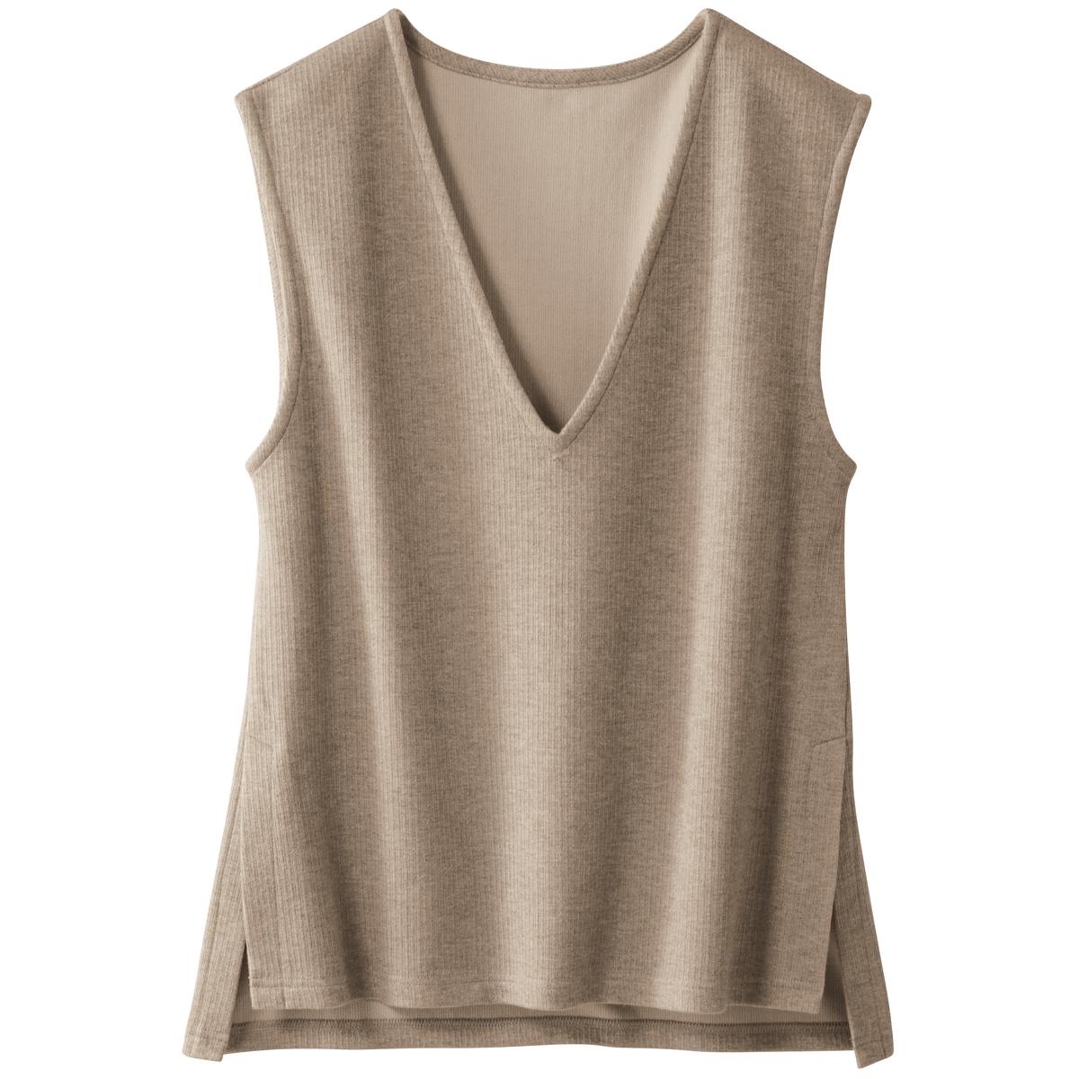 ベージュ うっすらと起毛した温かみのある細リブ