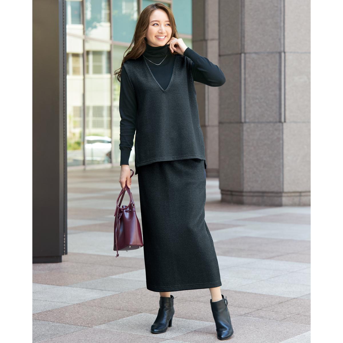 ■ポリエステル57%レーヨン30%ナイロン10%ポリウレタン3%(ジャカードニット)●両脇スリット入り●洗濯機OK●中国製