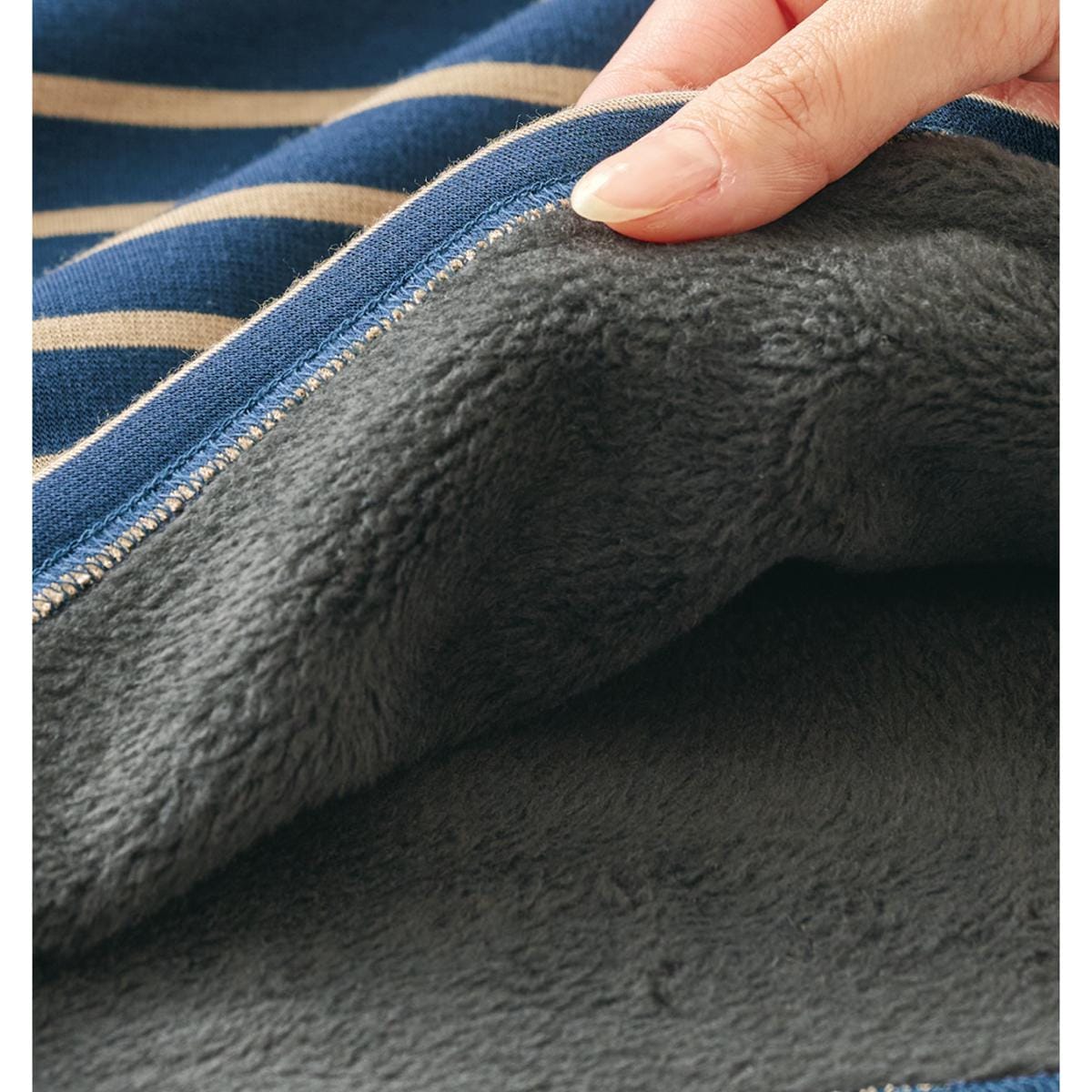 裏側はふわふわシャギー。袖を通すとふんわりあたたかい裏シャギー素材。