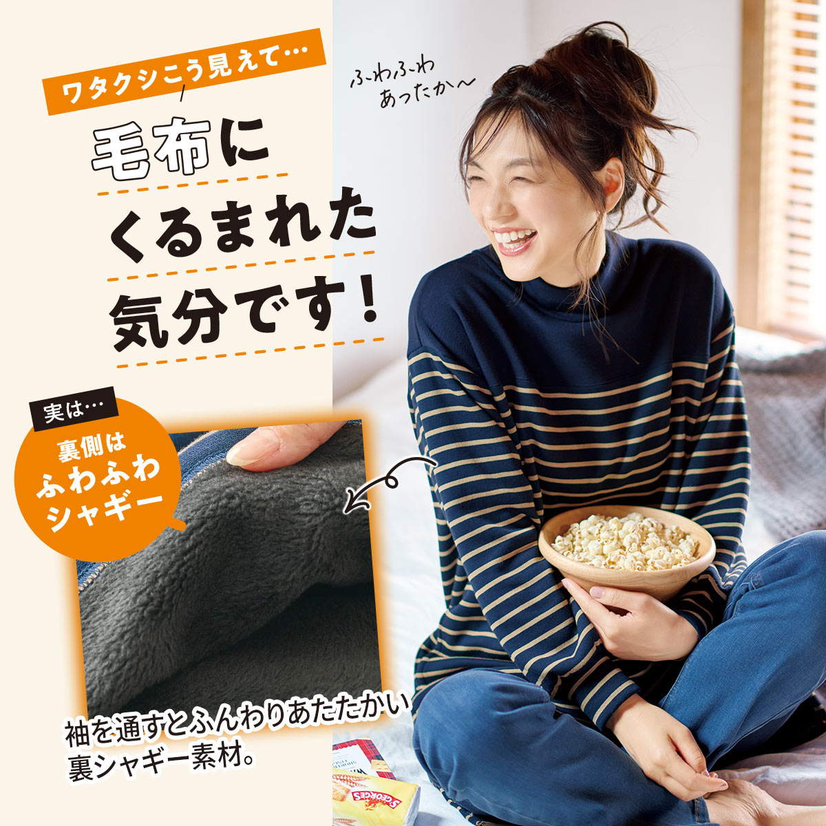 ふわふわあったか!毛布にくるまれた気分になる♪裏側はシャギー素材であたたかさに包みこまれるチュニック。