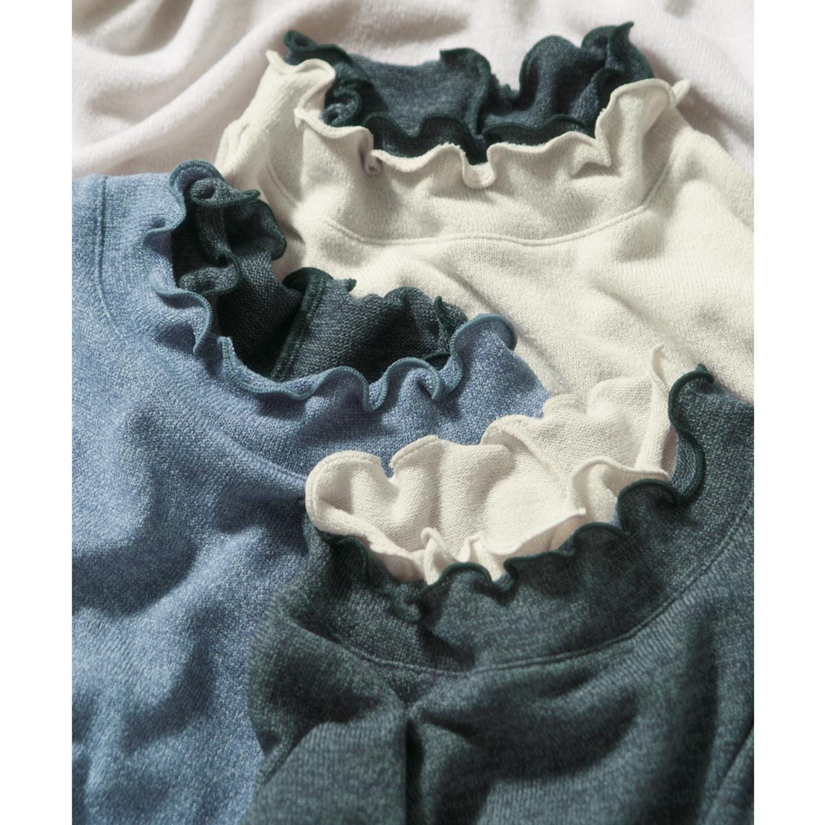 -お買い得ポイント-柔らかな風合いとニュアンスのある杢調カラーが魅力。安心の日本製。-デザイン-衿元の2枚重ねのメロー仕立てで華やかな表情を引き出します。-素材特徴-伸縮性のある生地で窮屈感のない着心地。