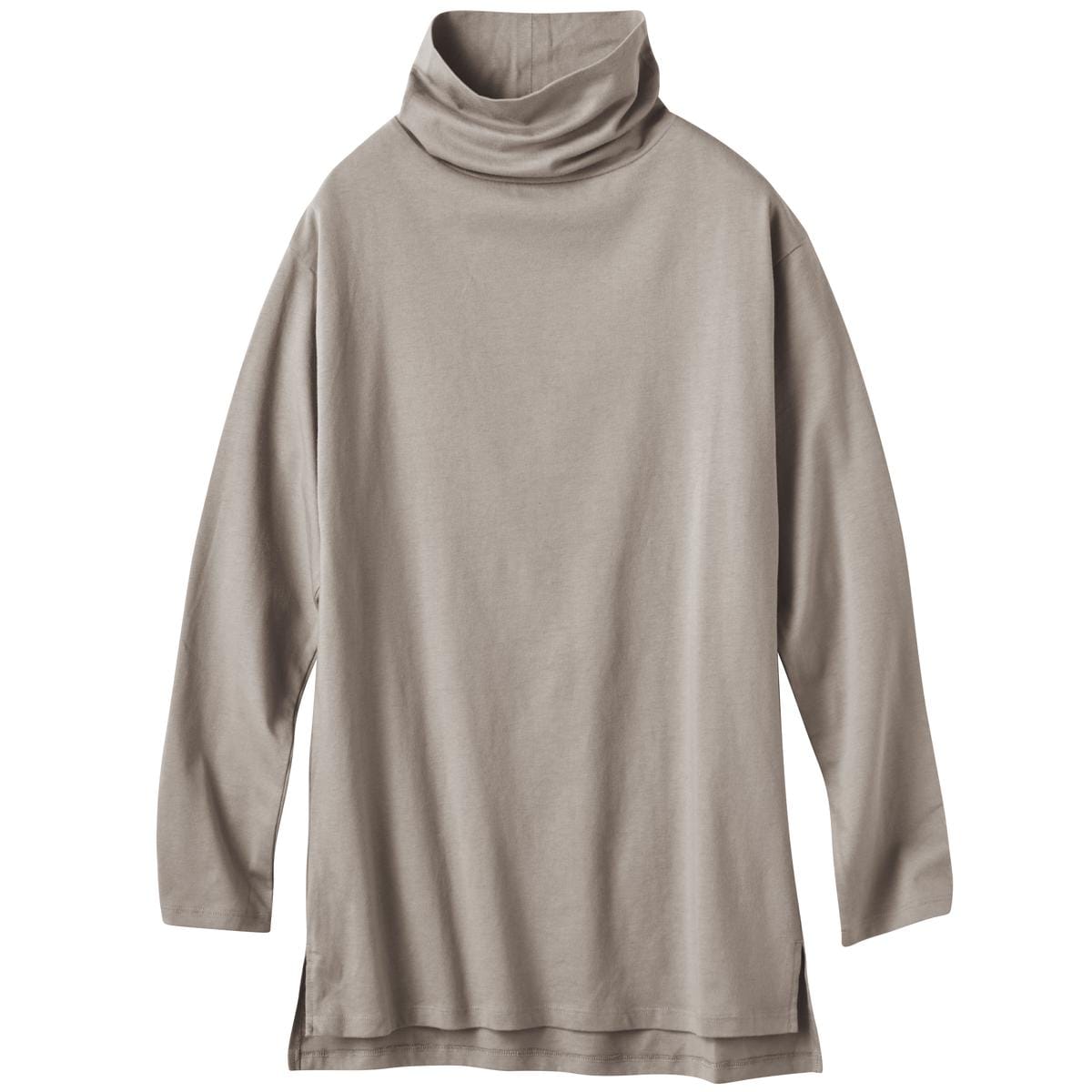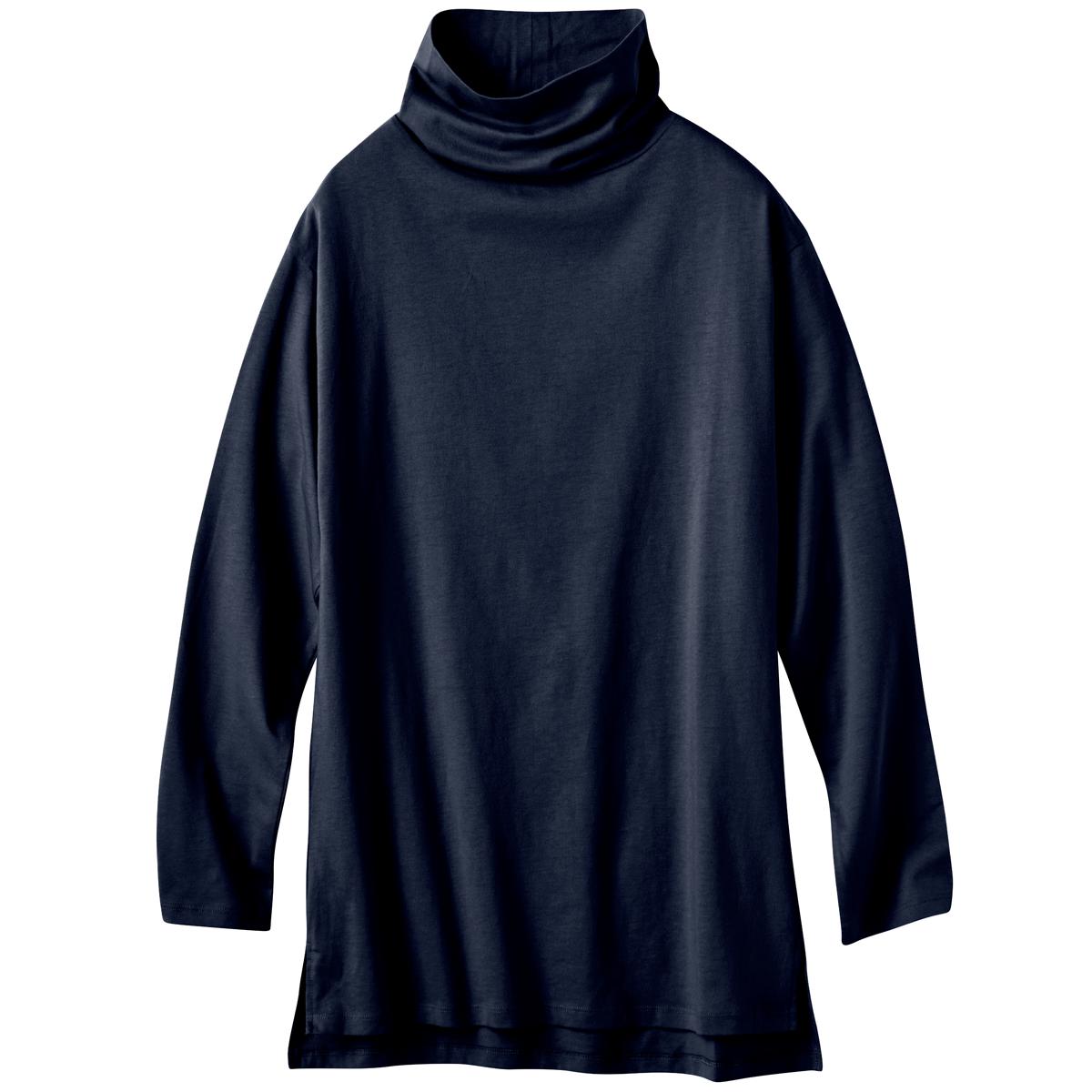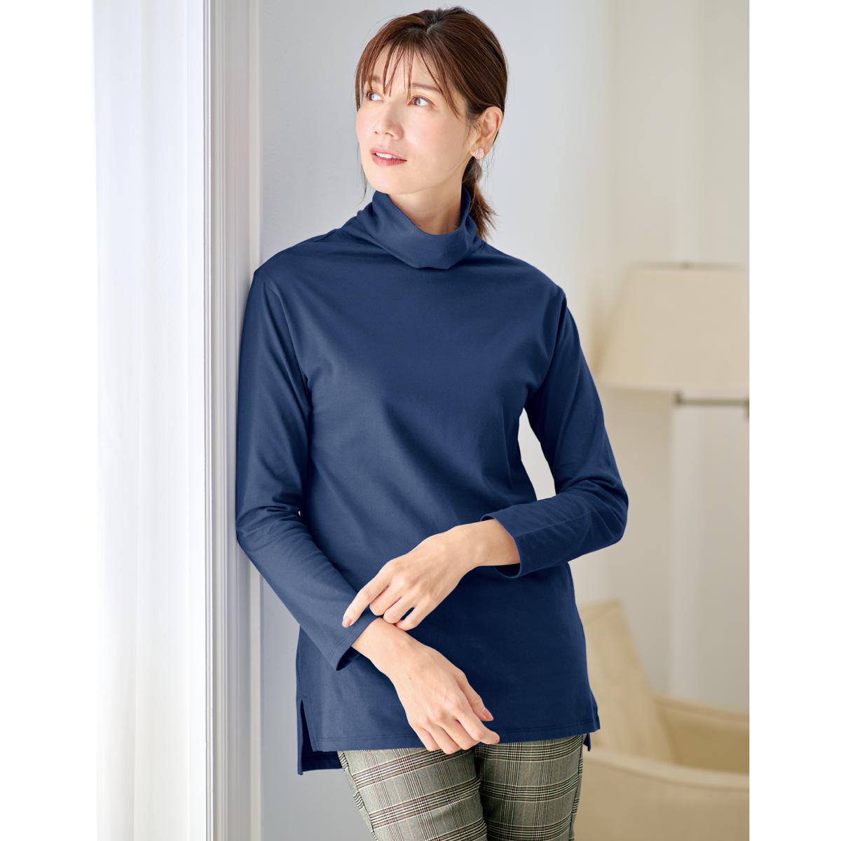 -お買い得ポイント-ルーズなハイネックで冷えやすい首元もあったか。ベストやニットの中に着ていただくと相性抜群です。-デザイン-腰まわりまですっぽりカバーする安心のロング丈。防寒対策だけではなく、コーデのアクセントにもおすすめ。-素材特徴-綿のやさしい風合いはそのままに、吸湿発熱機能を向上させて綿100%のあったか素材。帯電性の少ない綿を使用しているので冬時期のパチパチを軽減