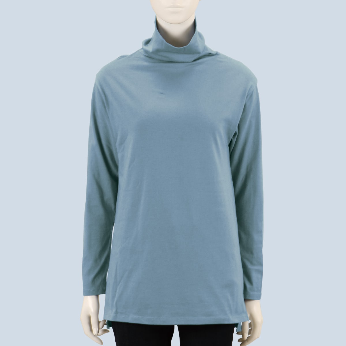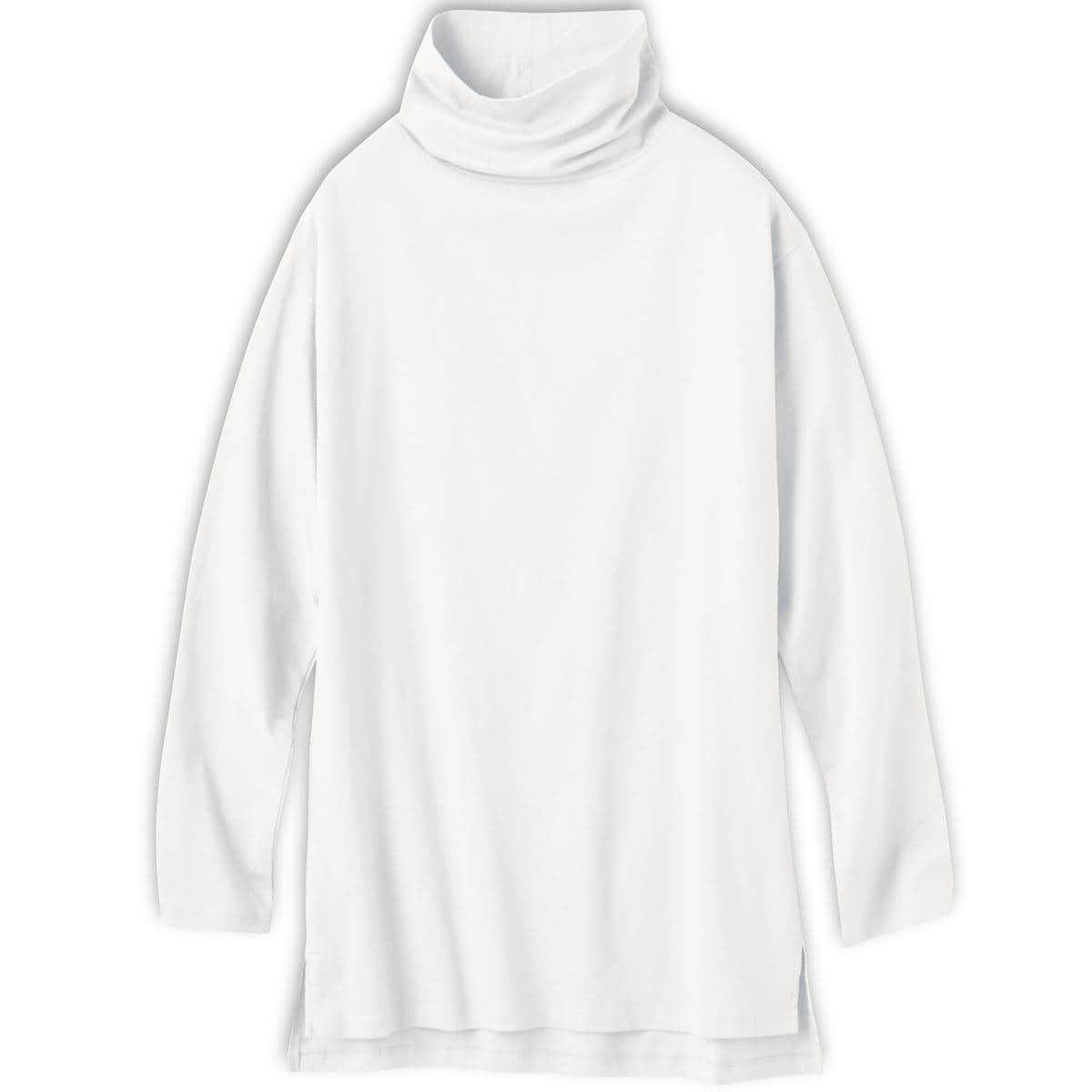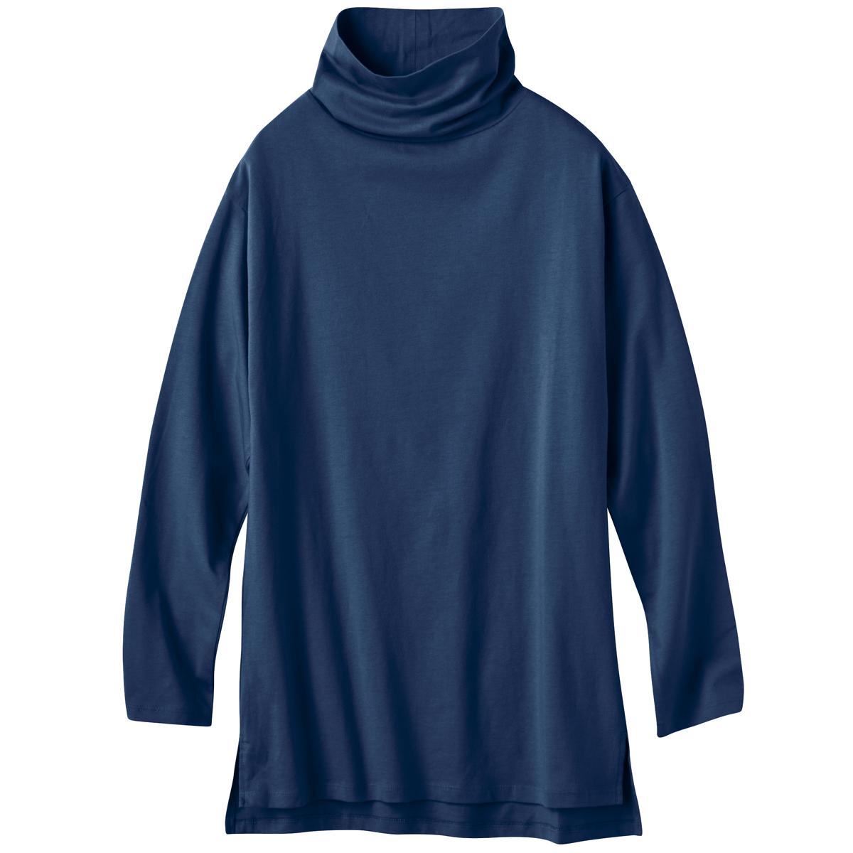 -お買い得ポイント-ルーズなハイネックで冷えやすい首元もあったか。ベストやニットの中に着ていただくと相性抜群です。-デザイン-腰まわりまですっぽりカバーする安心のロング丈。防寒対策だけではなく、コーデのアクセントにもおすすめ。-素材特徴-綿のやさしい風合いはそのままに、吸湿発熱機能を向上させて綿100%のあったか素材。帯電性の少ない綿を使用しているので冬時期のパチパチを軽減