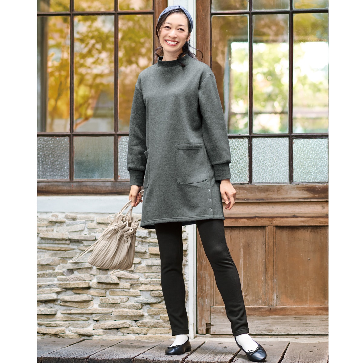 ぬくもりトップス冬の定番!お家でも外でもあったか裏起毛のハイネックチュニック。