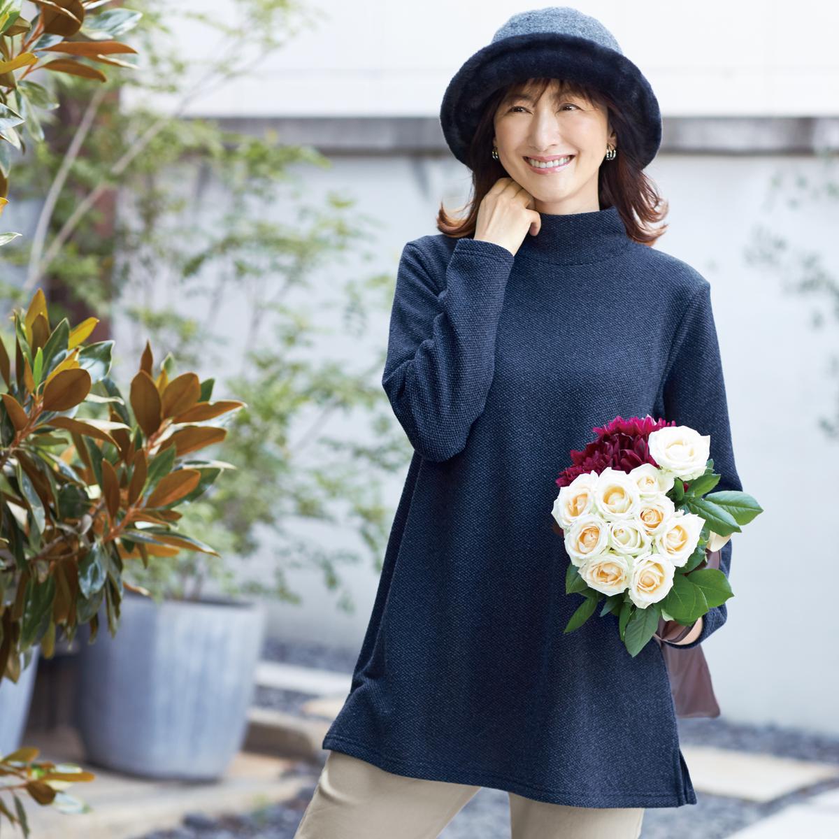 -お買い得ポイント-厚すぎず、コートを重ねてももたつきにくい軽やかな着心地。上品に着こなせるツイード調です。-デザイン-チュニックなのでパンツと合わせると、お尻回りも隠れて安心のデザイン。ツイード調の生地なのでカジュアルダウンせず、上品なスタイリングができるのが特徴です。-素材特徴-軽くて柔らかくぬくもり感のある裏起毛素材。お尻回りまであたたかく着れます!