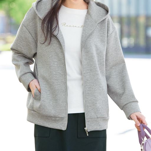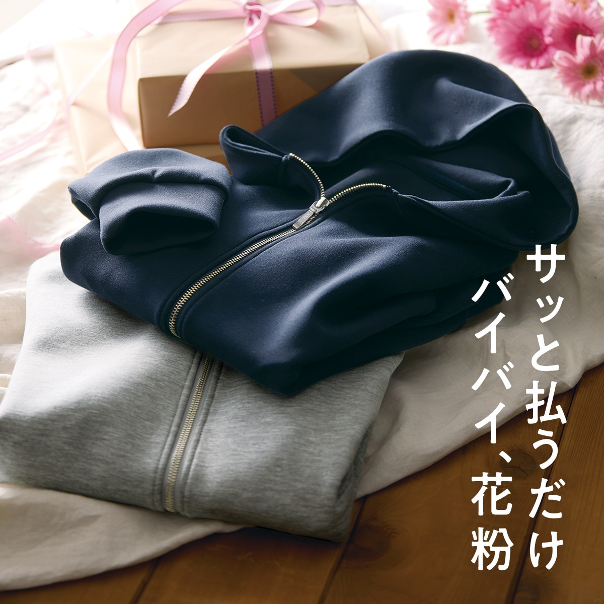 【「心地いいに、ときめく。」商品】サッと払うだけバイバイ、花粉!表面がすべすべしているので花粉が付きにくく、春先におすすめのパーカーです。