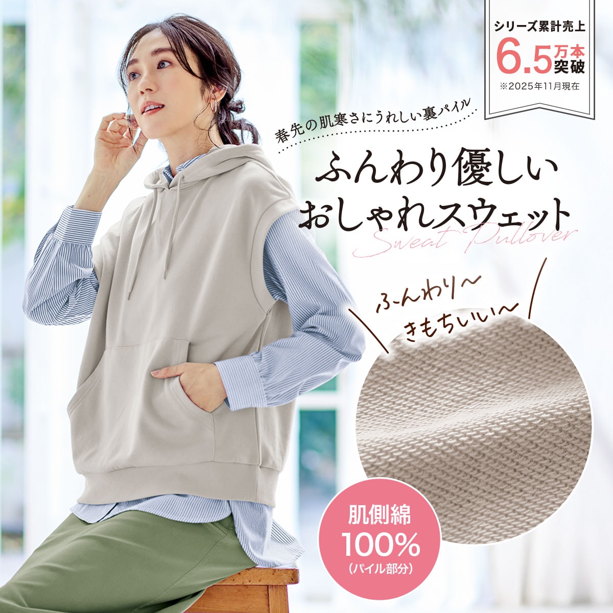 春先の肌寒さにうれしい裏パイル!ふんわり優しいおしゃれフードベスト。