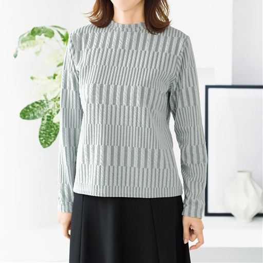 ぐ~んと伸びてラクな、こだわりの日本製ジャカードアイテム!編み地に風合いがあり一枚ですっきり着映えます。