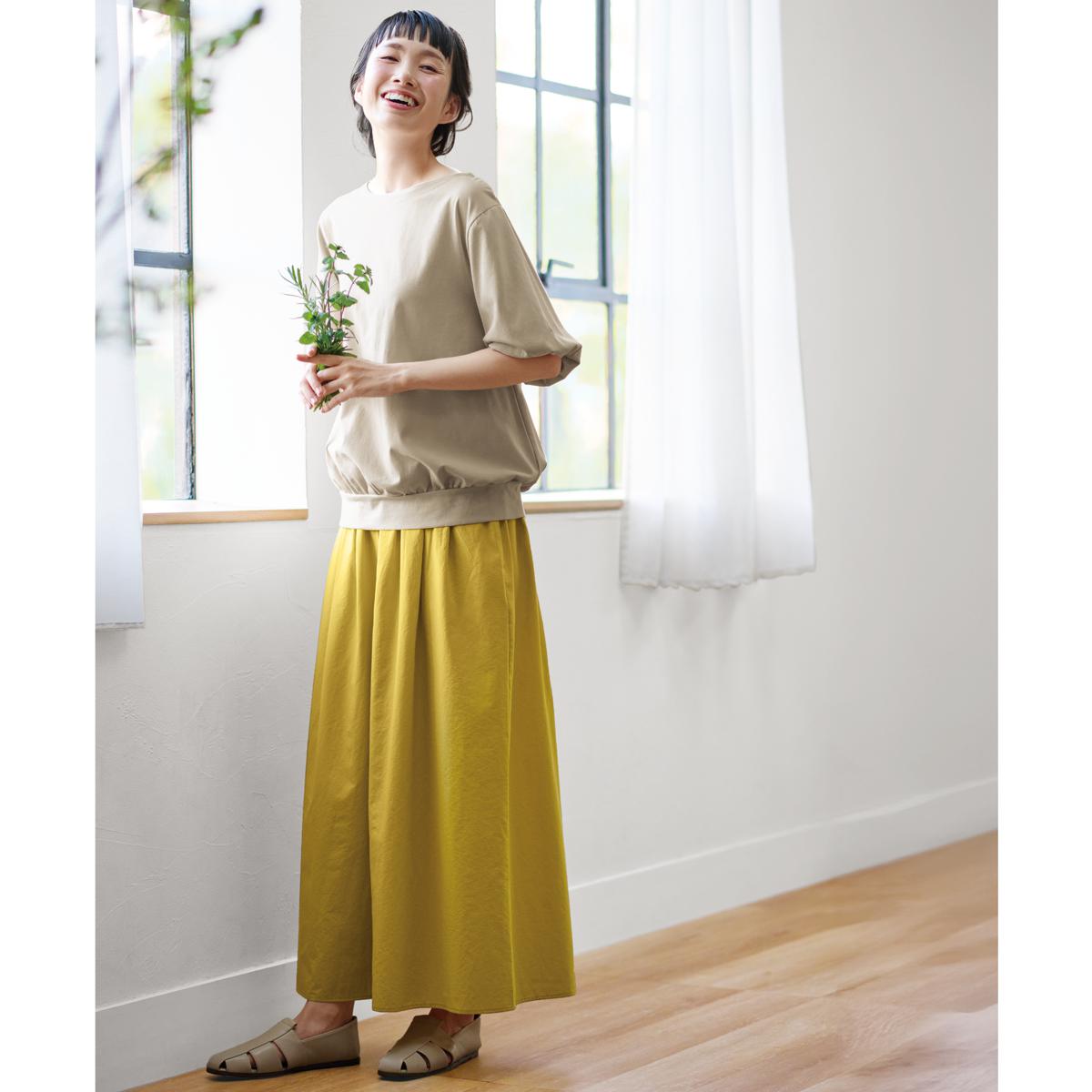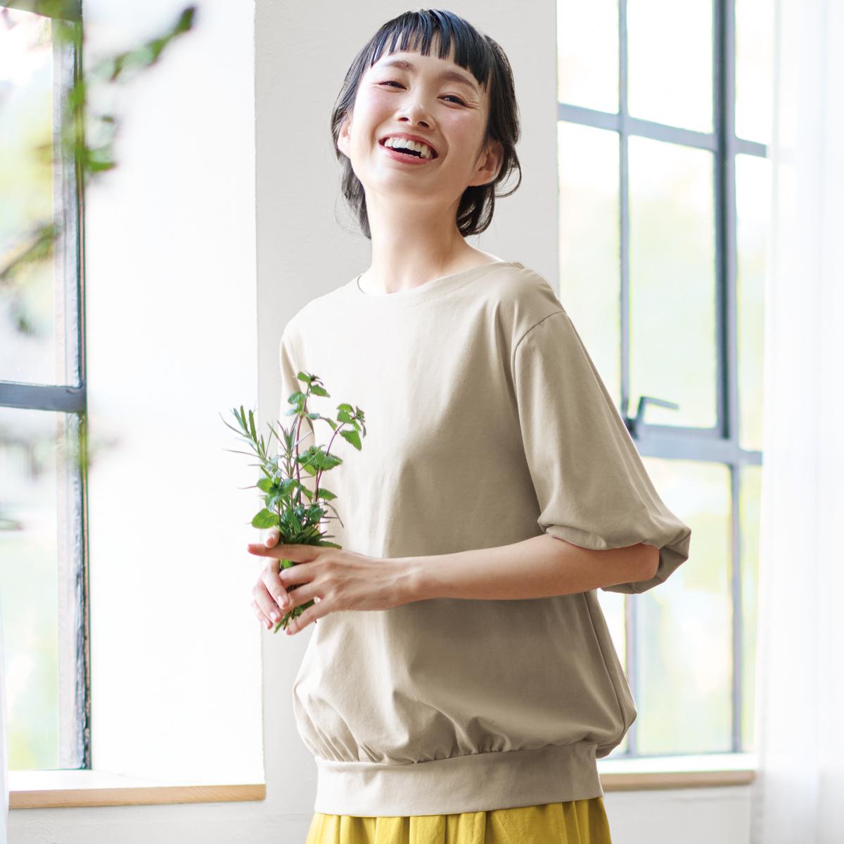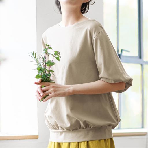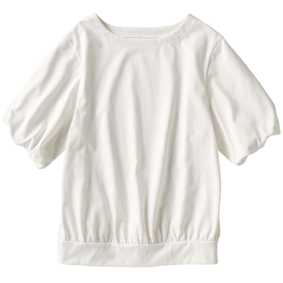 -お買い得ポイント-風船のように袖がふんわりと大きく膨らんだデザインが特徴で、華やかで女性らしいシルエットを演出します。-デザイン-ふんわりとした袖と腰まわりの立体感のあるギャザー使いが大人かわいい。存在感のあるふんわりボリューム袖は、袖口2枚仕立てのゴム入り仕様。-素材特徴-透けにくく着た瞬間ひんやり気持ちいい接触冷感素材。