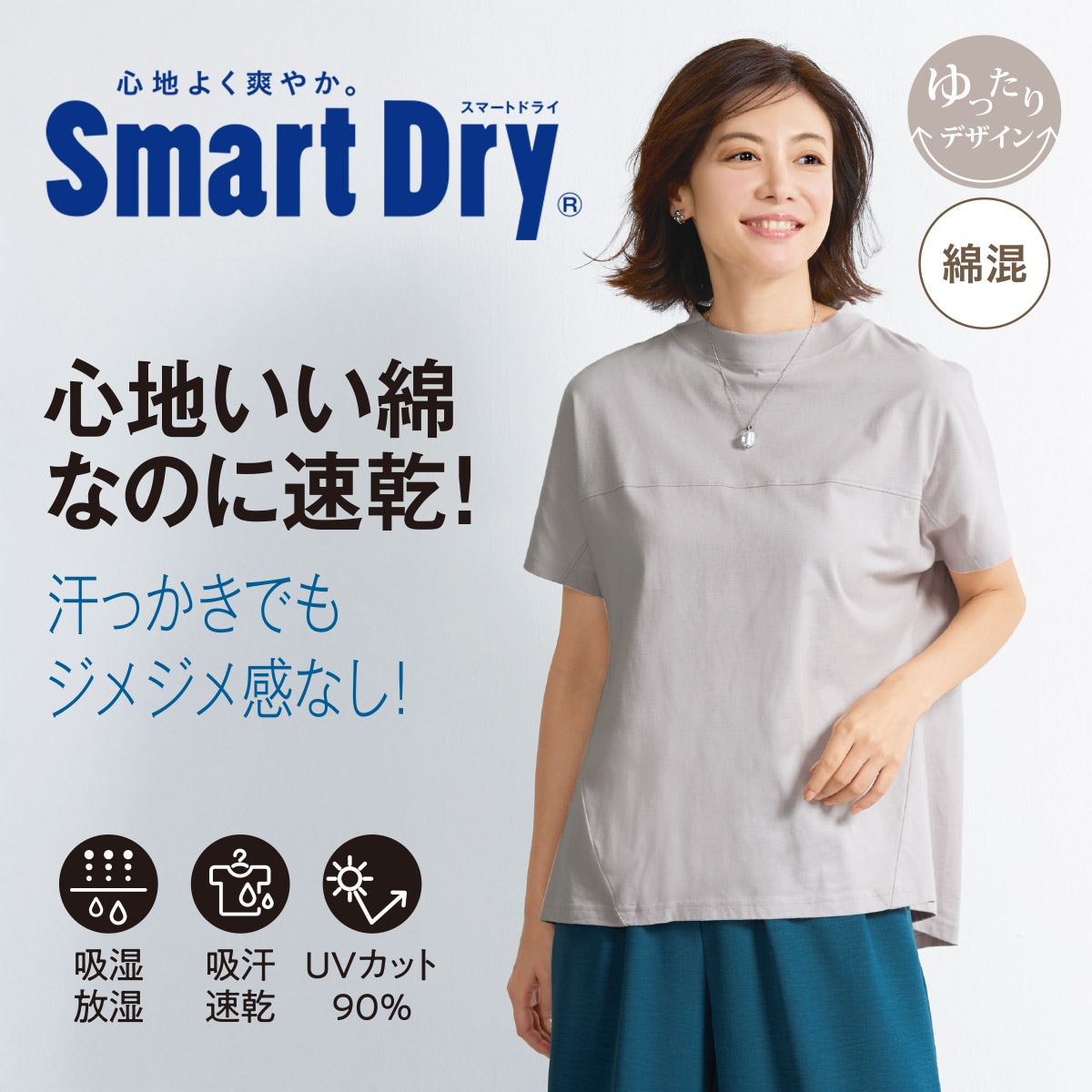 -お買い得ポイント-胸元の切り替えがアクセントになり、シンプルでもメリハリのあるスタイルに。-デザイン-ゆるやかなAラインと前寄りの切り替えが、体型を拾いにくく華奢見え。-素材特徴-ポリエステルを吸放湿性のある綿でくるんだ糸を使用し、汗をかいても湿気がこもらず爽快。湿度が高くなるこれからの季節に嬉しいさらっと感です。