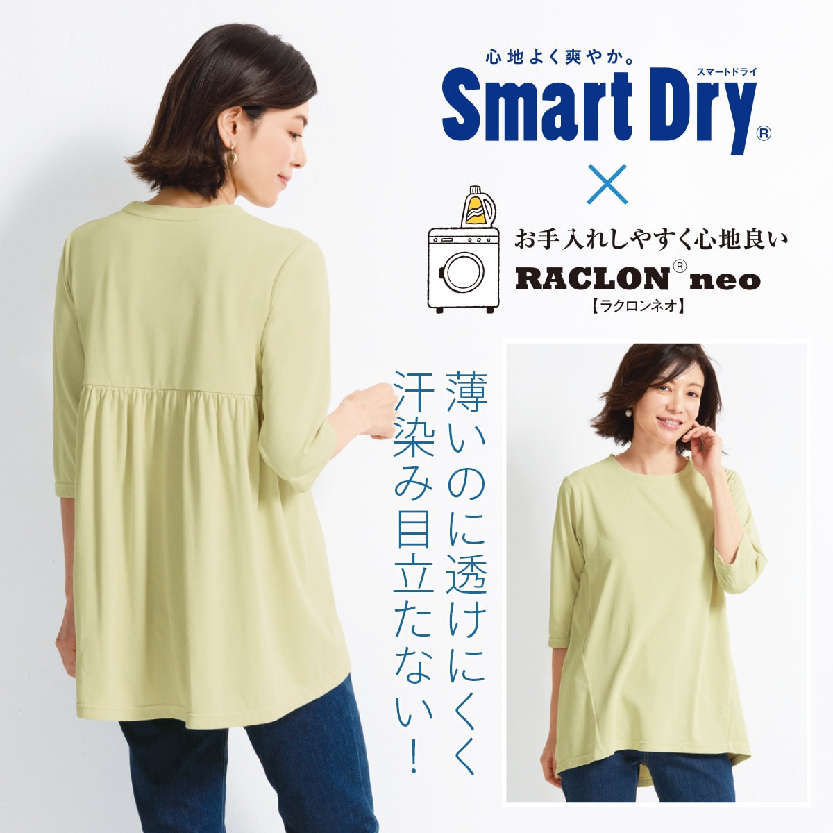 -お買い得ポイント-汗をかいてもさらりとドライなSmart Dry×お手入れらくちんラクロンネオの嬉しい快適機能素材を使用!お尻周りやウエストを女性らしくカバーし、華やかな後ろ姿を演出します。カジュアルからオフィスカジュアルまで着回し自由自在。-デザイン-バックフレアで腰まわりをカバー。前振りの切り替えですっきりした着こなしに。-素材特徴-光の乱反射で透けにくく、汗染みを見えにくくするから安心。吸汗速乾機能で汗ばむ季節に心地良く着られる薄手素材です。