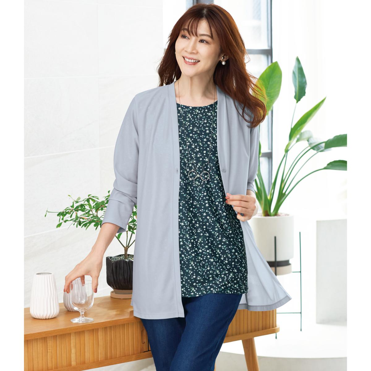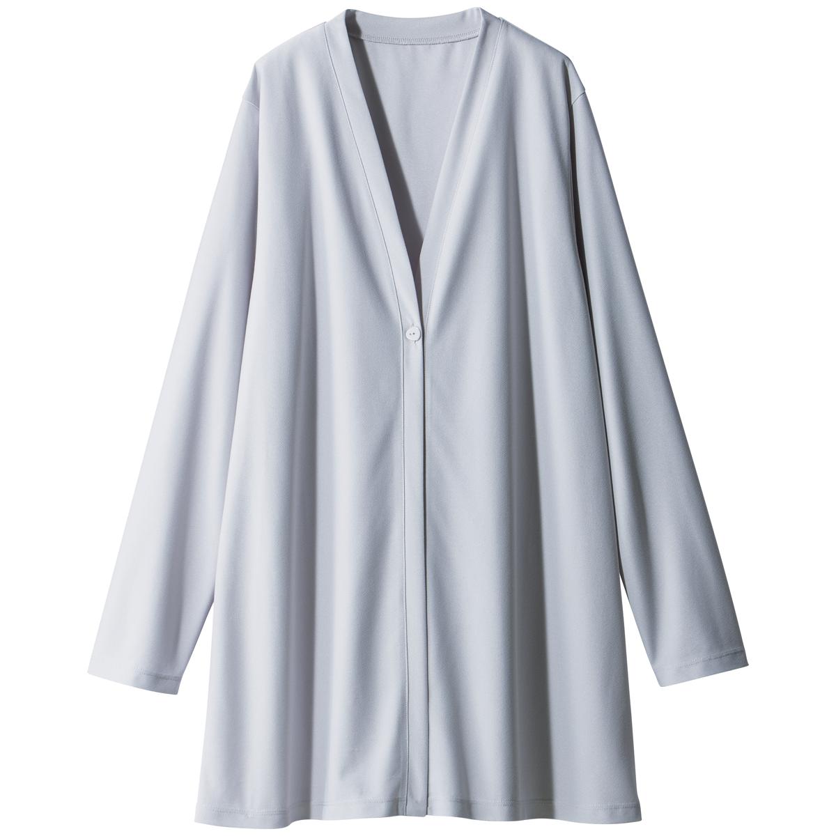 -お買い得ポイント-軽やかな薄手素材で、冷房対策にも重宝するカーディガン。-デザイン-付け外しラクな三角ボタンを使用。丈が長めなので、さっと羽織ってすっきりしたシルエットに。-素材特徴-軽やかな薄手素材で袖を通した瞬間、ひんやり。UVカット90%、洗濯してもシワになりにくいなど夏にうれしい機能いっぱい。ぐ~んと伸びて着心地ラク!