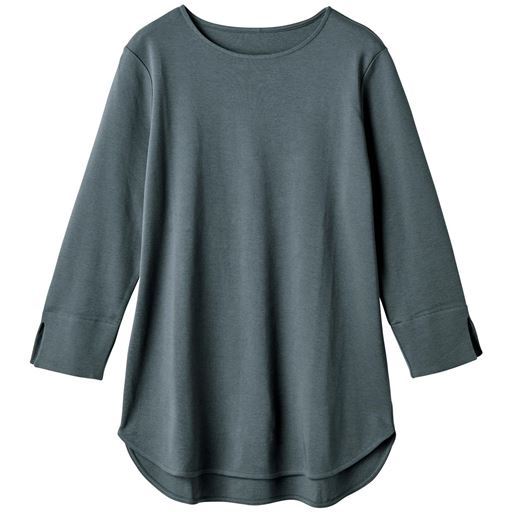 袖スリットロングプルオーバー(7分袖)(綿100%・洗濯機OK)