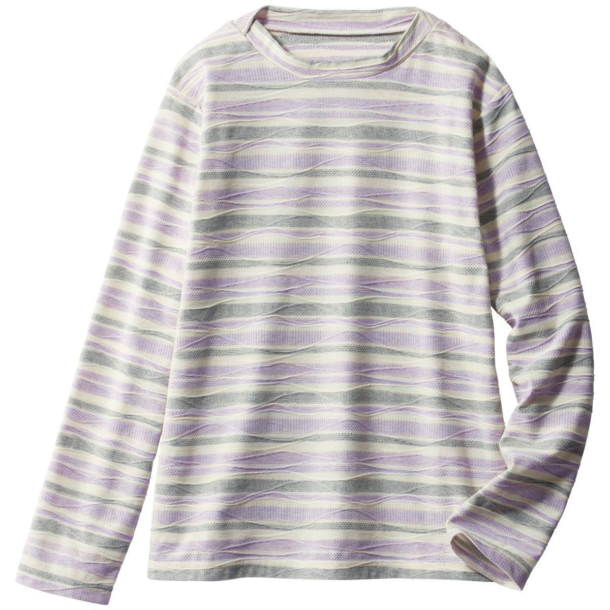 -お買い得ポイント-多彩なボーダー柄が涼感を誘います。程よい衿開きで着回し力抜群。-デザイン-シンプルなデザインでボトムを選ばず、着回しやすい!-素材特徴-立体感がある肌離れの良いジャカード素材。