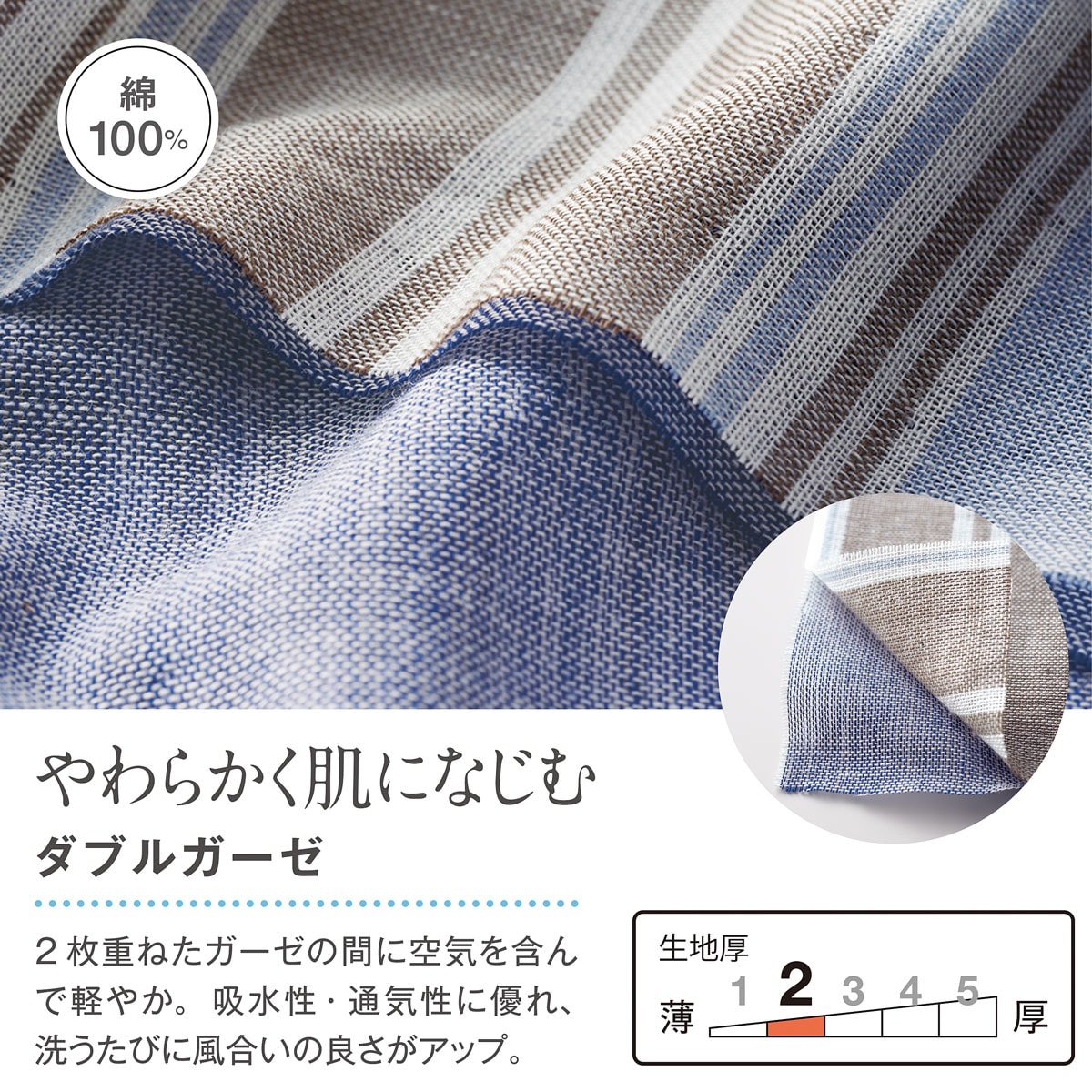 お風呂上がりもさらっと気持ちいい♪洗うほどに風合いが増す綿100%ダブルガーゼのゆったりワンピース。ナチュラルでかわいく、ルームウェアにも◎!