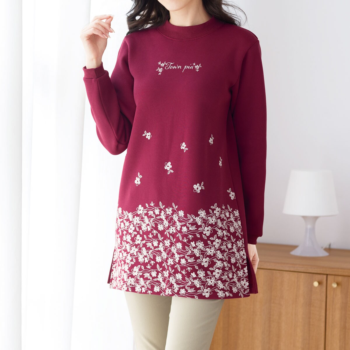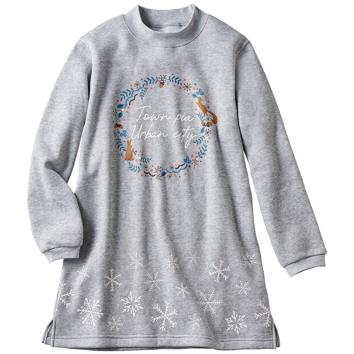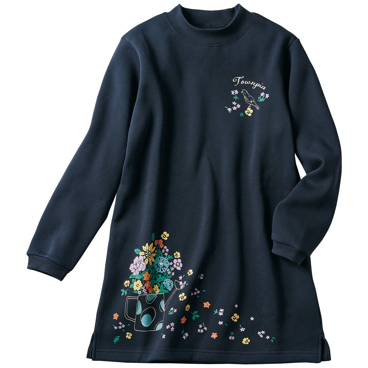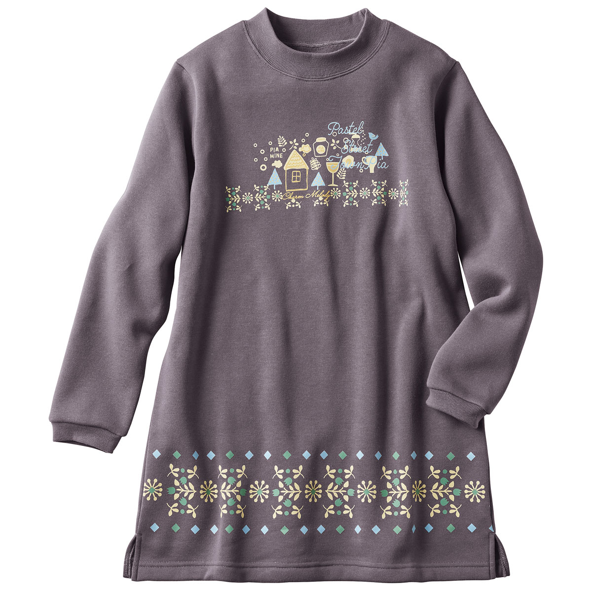 トレーナー感覚でさらっと着られてあたたかい、ふんわり裏起毛のハイネックチュニック。肌ざわりのいい綿混素材で、厚みがあるのに軽い着心地。ハイネック&長め丈で首まわりからヒップまで包んで、ぬくもりも体型カバーも叶います。衿・袖リブ仕様で冷気もシャットアウト。洗濯後に乾きやすいから、冬のデイリーウェアとして活躍します。可愛いプリント柄のバリエーションは色違いで揃えてもグッド。Mから5Lまでサイズも豊富。